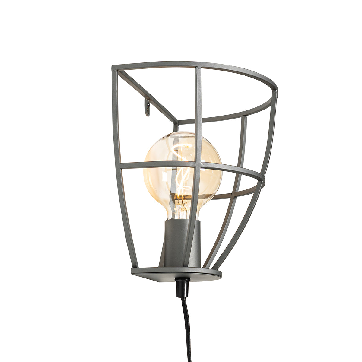 QAZQA Industriële wandlamp donkergrijs met schakelaar - Arthur