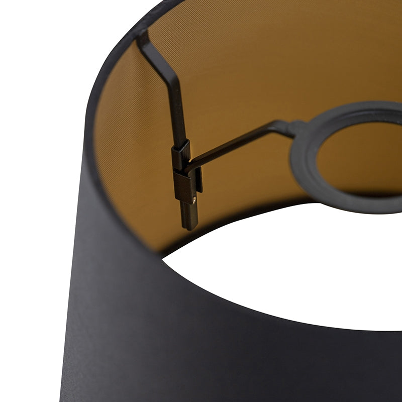 QAZQA Katoenen lampenkap zwart 25|20|16 met gouden binnenkant