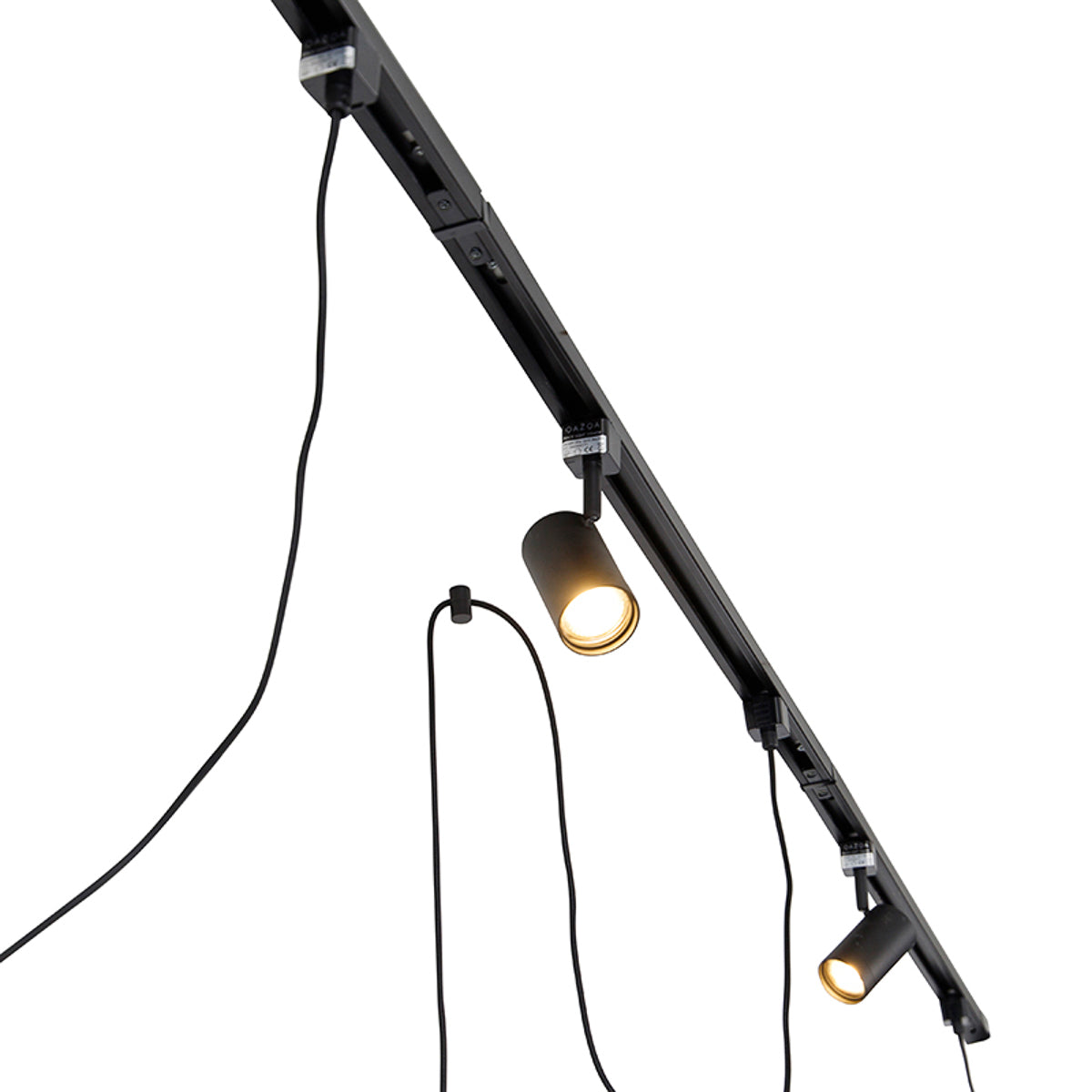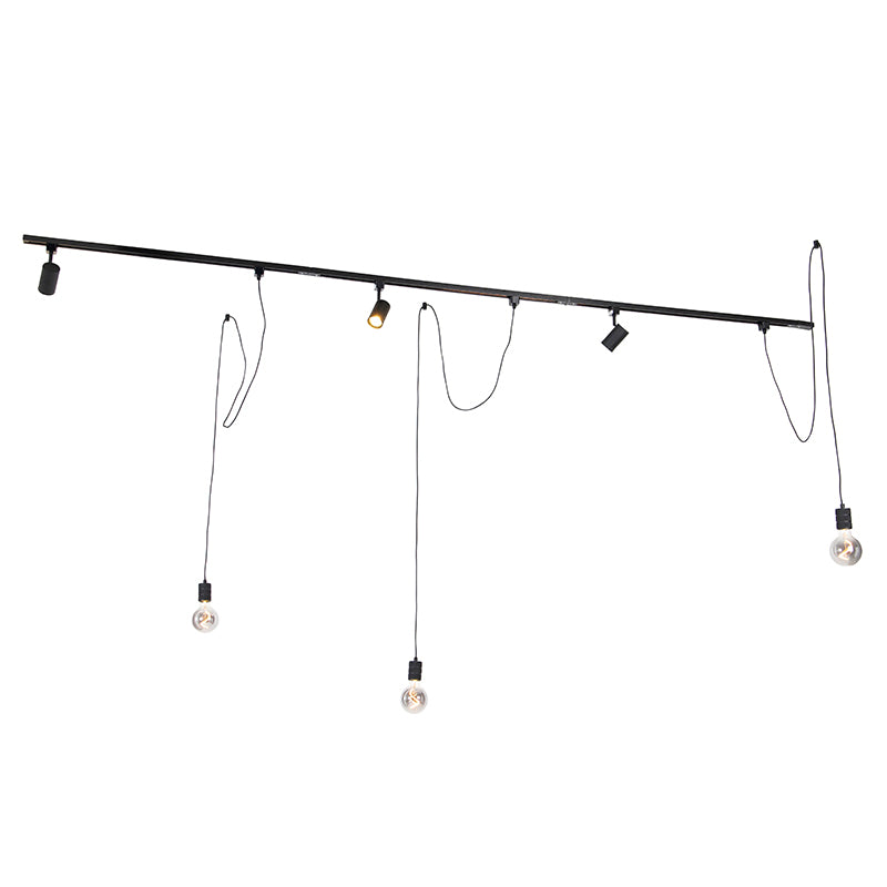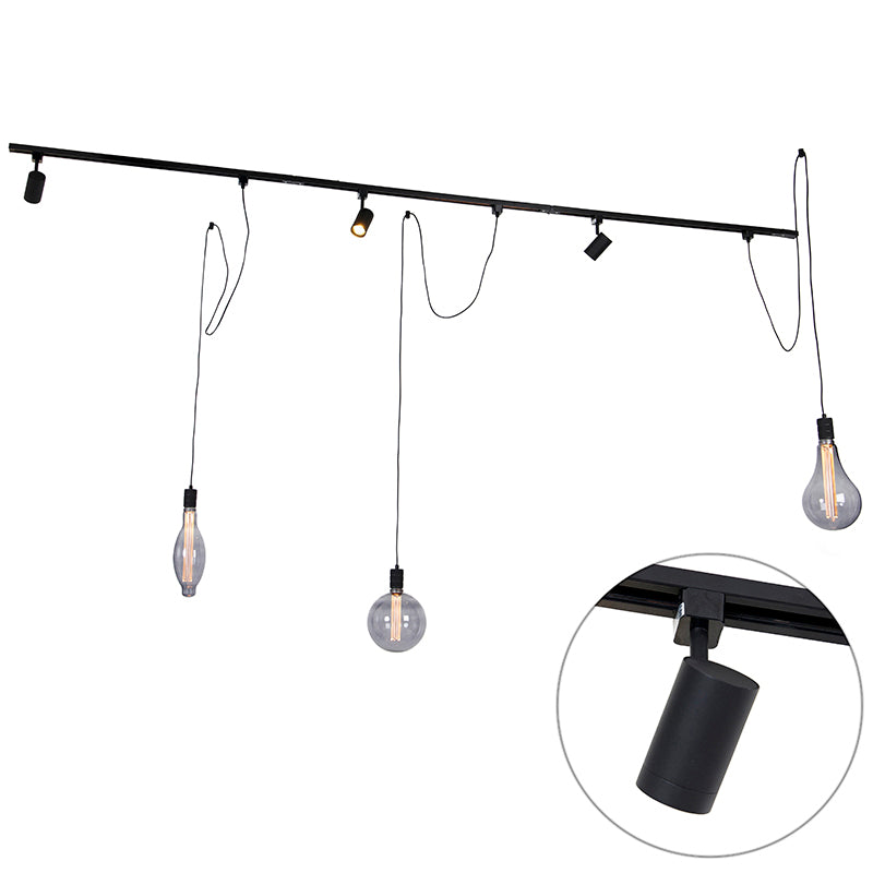 QAZQA Modern railsysteem met 3 spots en 3 hanglampen zwart 1-fase -