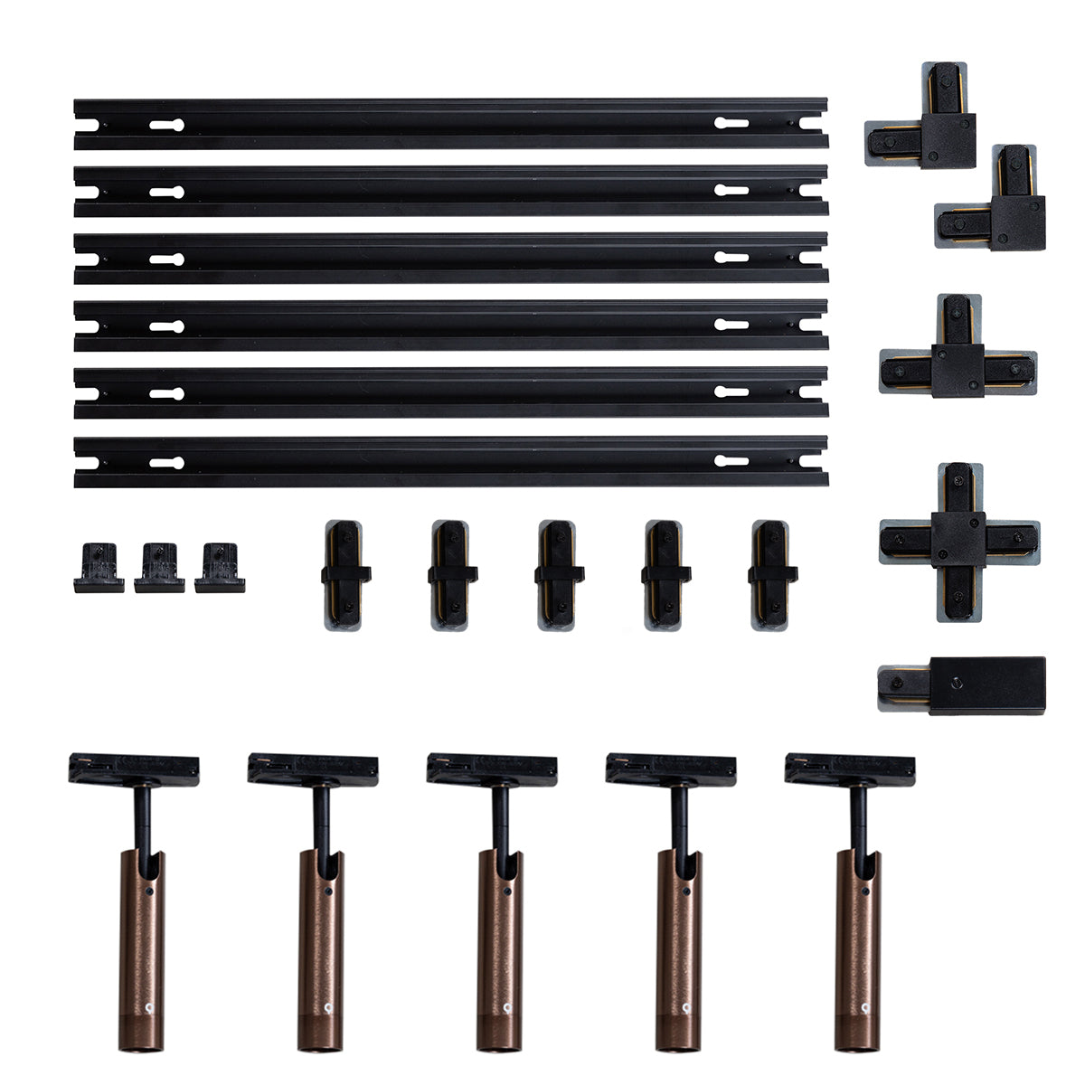 QAZQA Modern railsysteem met 5 spots donker brons 1-fase GU10 35mm -