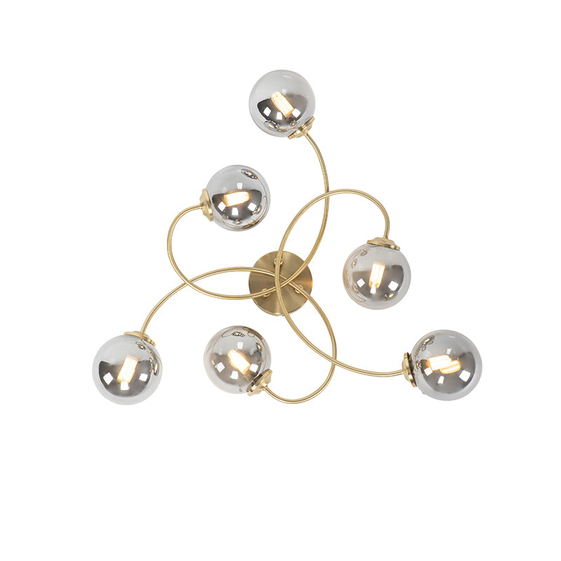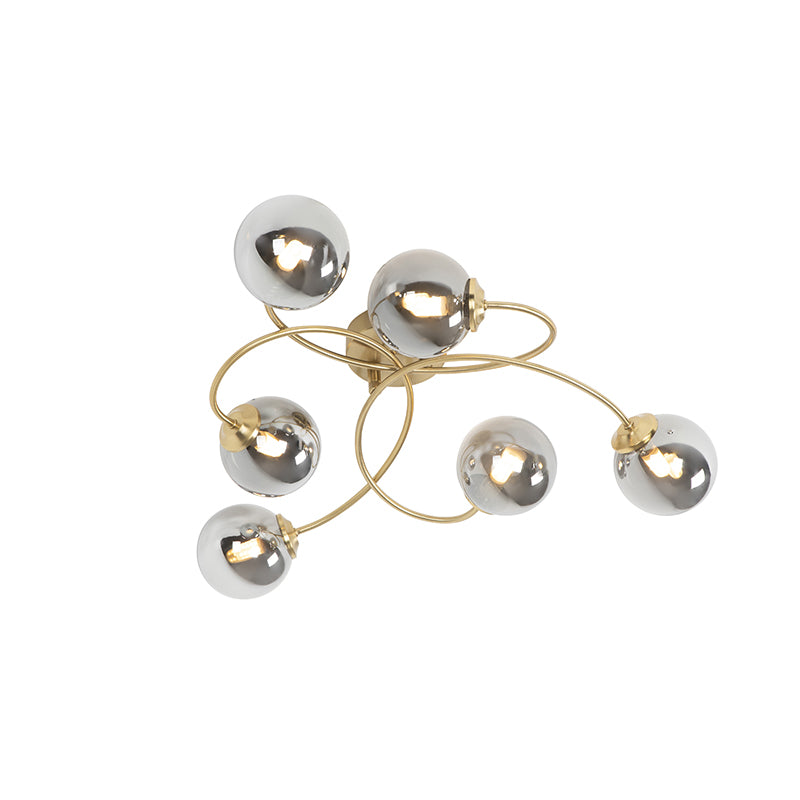 QAZQA Moderne plafondlamp goud 6-lichts met smoke glas - Athens