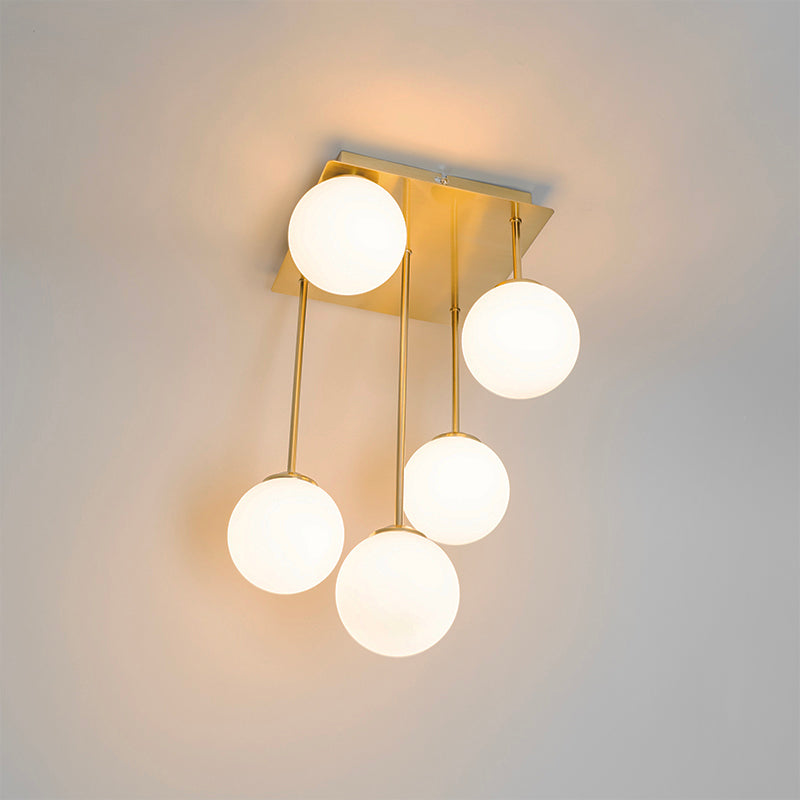 QAZQA Moderne plafondlamp goud met opaal glas 5-lichts - Athens