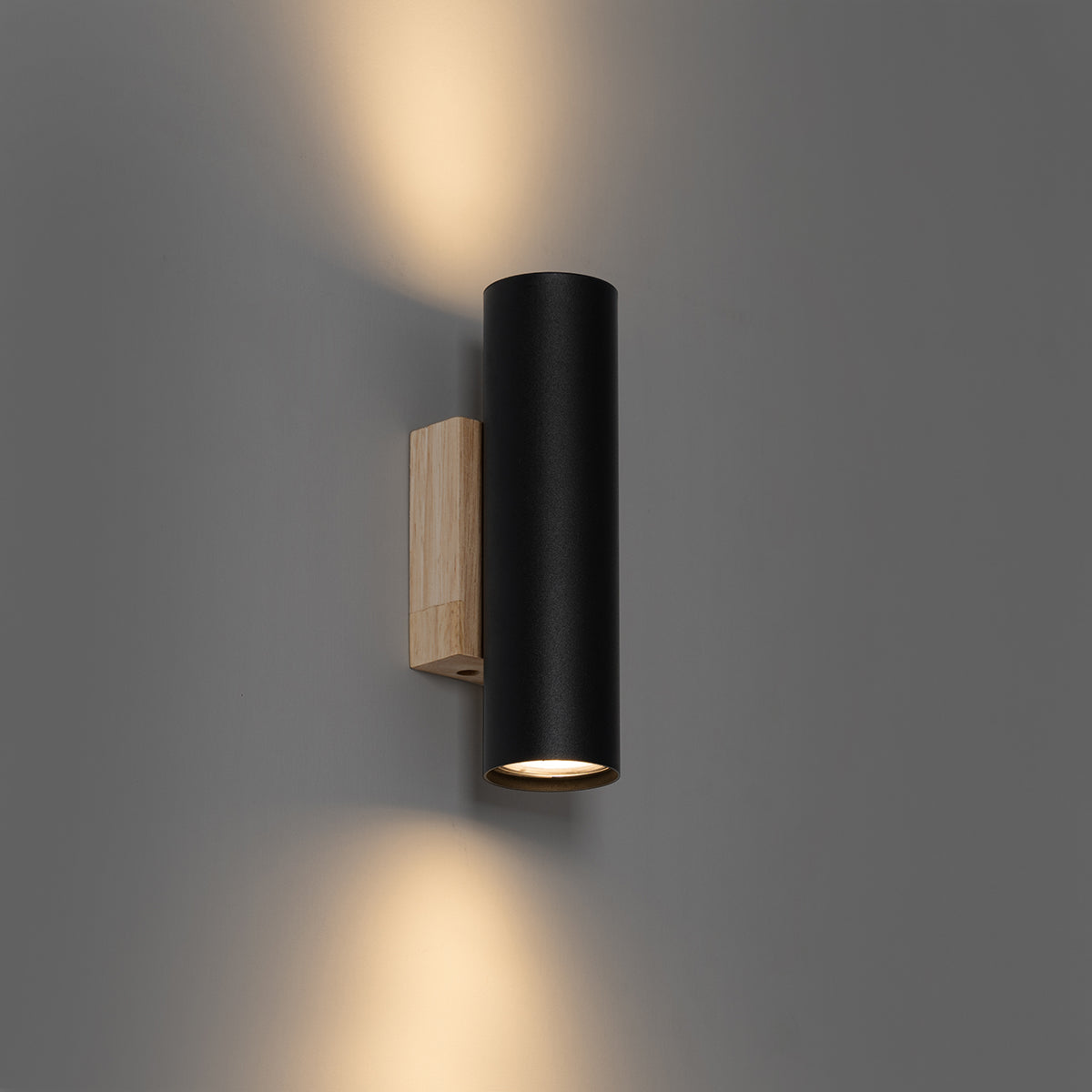 QAZQA Moderne wandlamp zwart met hout 2-lichts - Jeana