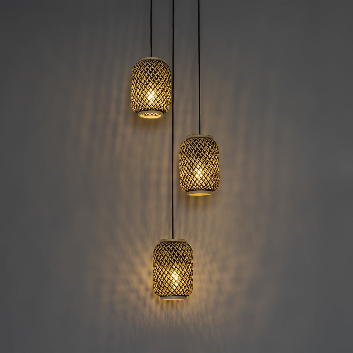 - Het materiaal van de lamp is bamboe