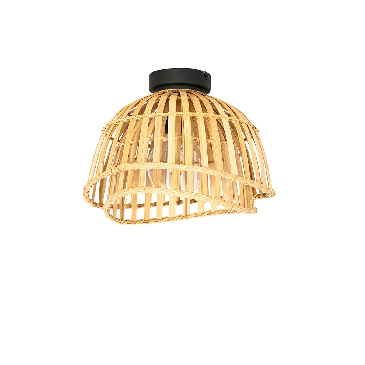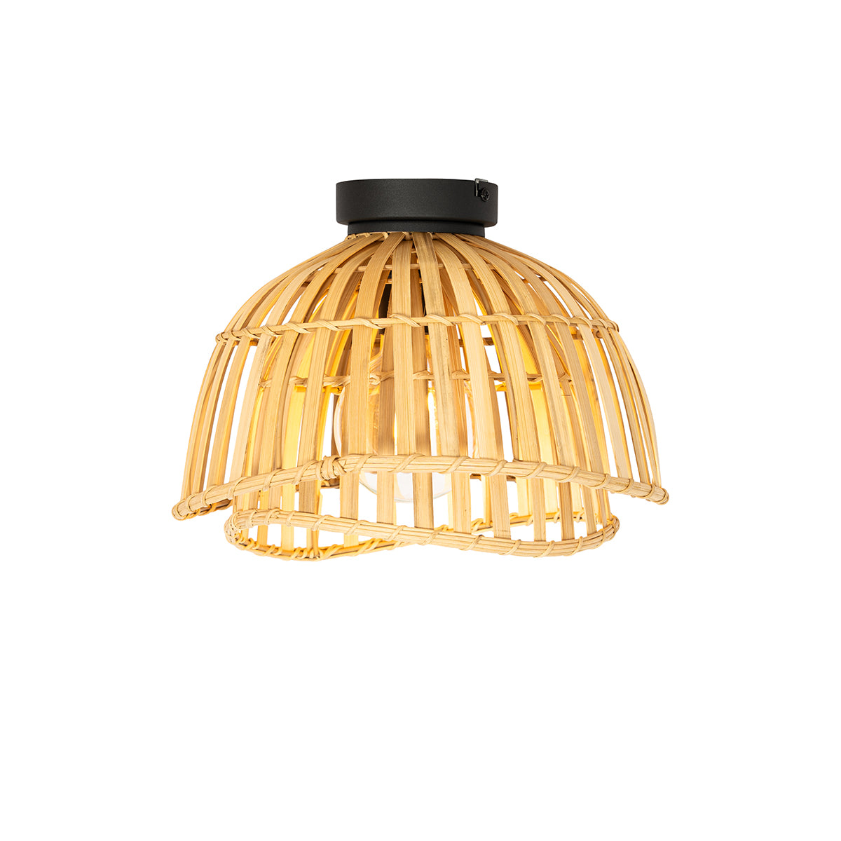 QAZQA Oosterse plafondlamp zwart met naturel bamboe 30 cm - Pua