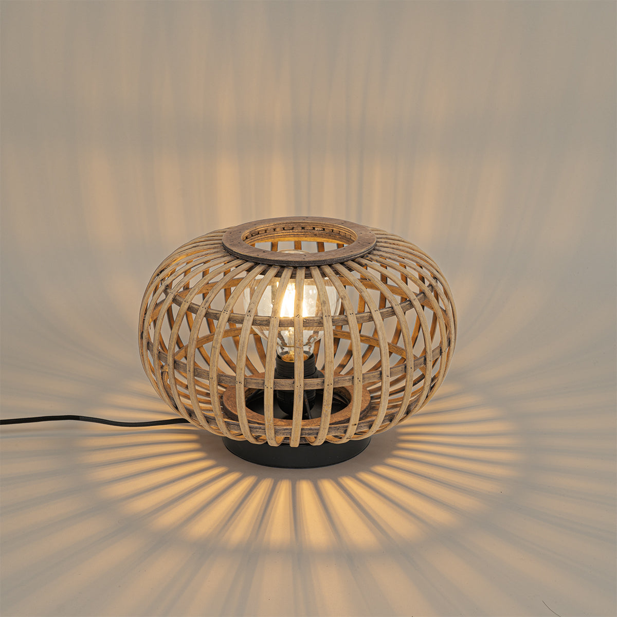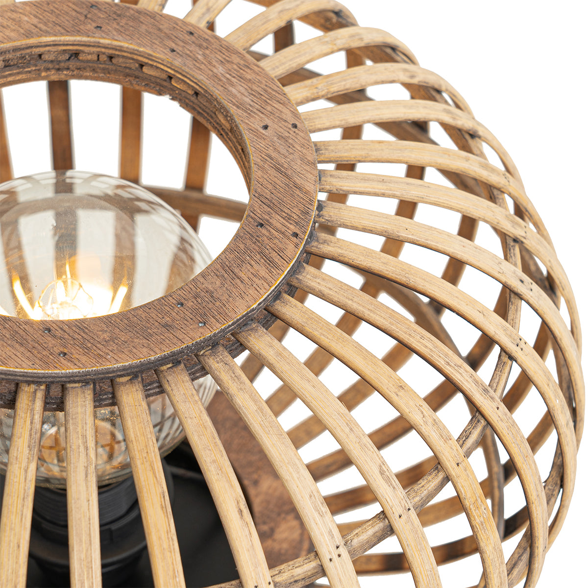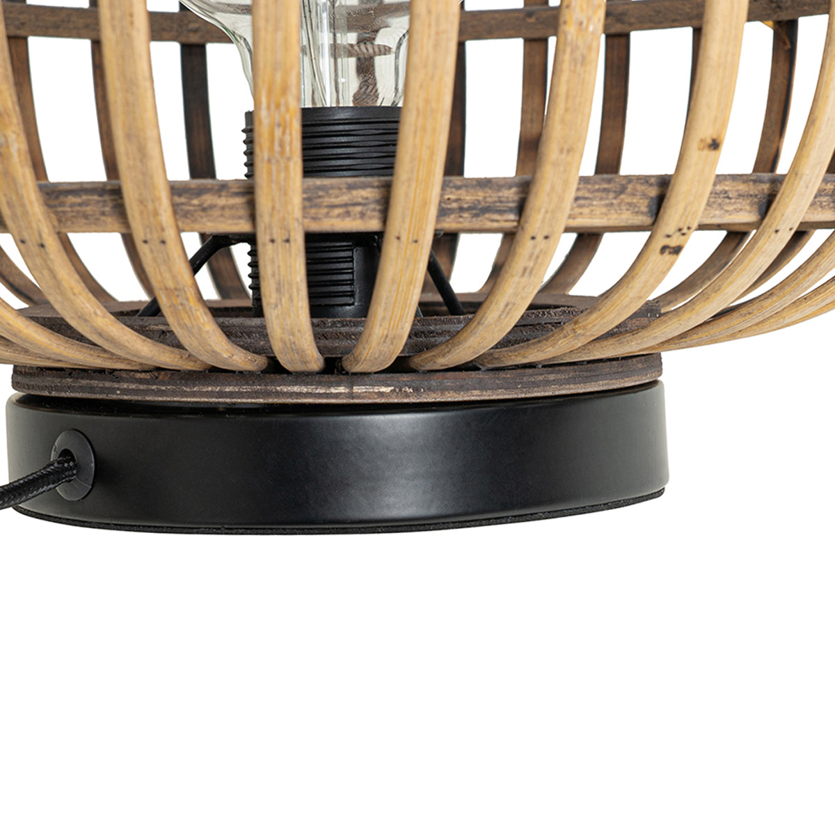- Het materiaal van de lamp is bamboe
