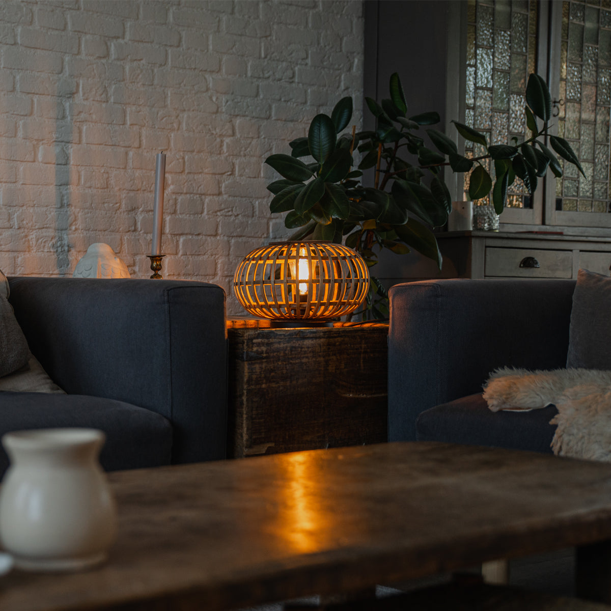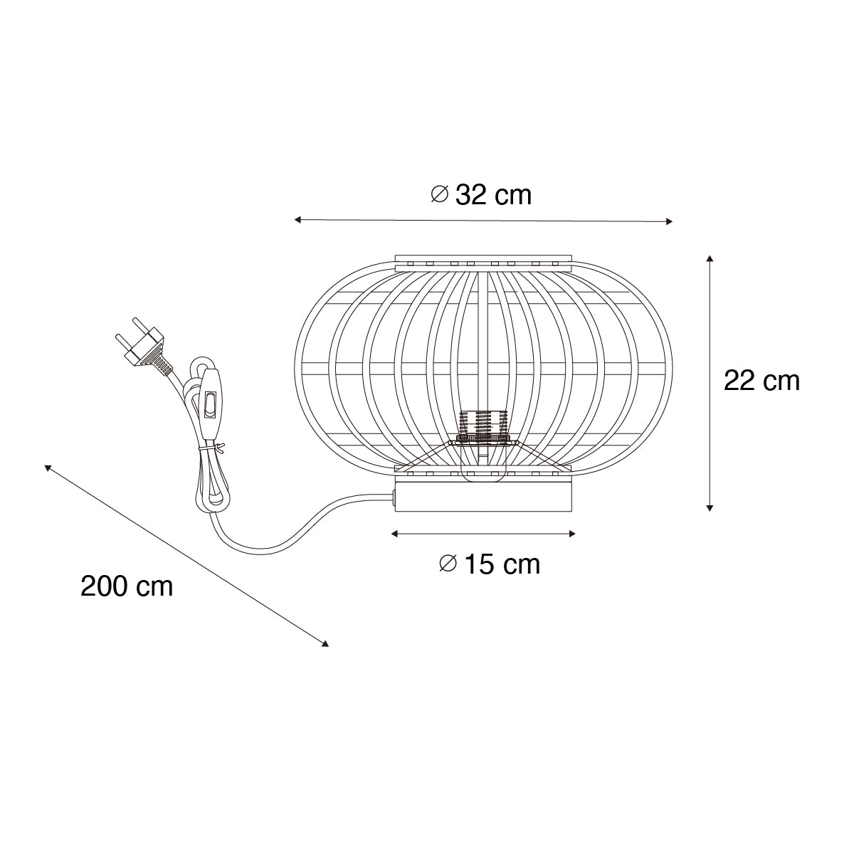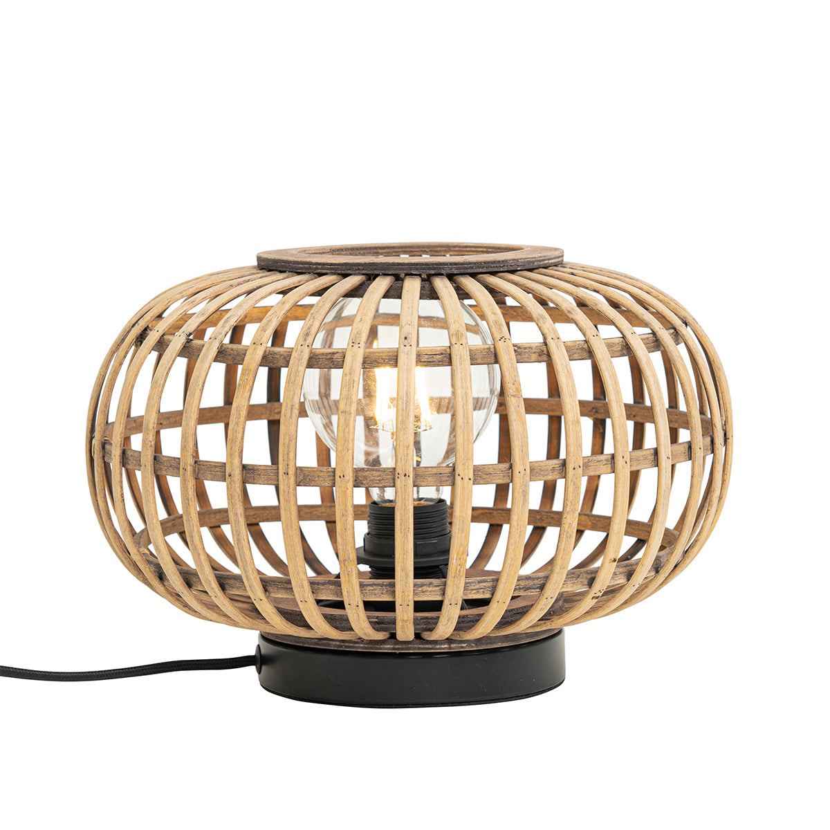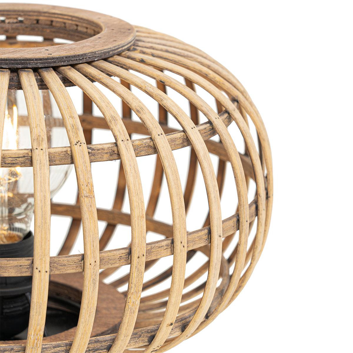 - Het materiaal van de lamp is bamboe