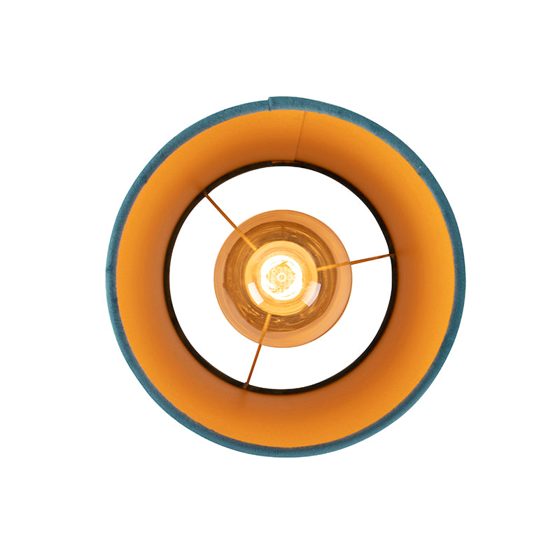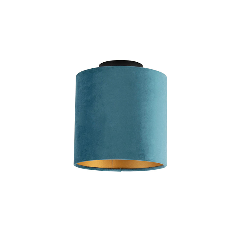 De combi zwart is een prachtige plafondlamp die een eye-catcher is in je interieur. Met deze plafondlamp voorzie je jouw interieur direct van een sfeermaker. De gouden binnenkant van de kap zorgt ervoor dat je woning in warm licht wordt gehuld. De lamp is ook dimbaar (dimmer niet inbegrepen) waardoor je nog meer sfeer kan creëren. De lamp heeft een beeldschone blauwe velours kap wat de lamp direct een rijke uitstraling geeft. De lamp is 23 cm hoog en heeft een diameter van 20 cm. De plafondplaat heeft een diameter van 10 cm. Als je deze lamp aanschaft is het belangrijk dat je zelf nog even een E27 lichtbron aanschaft (max 60W), deze is namelijk niet inbegrepen. Een simpele maar stijlvolle lamp die je interieur helemaal afmaakt!