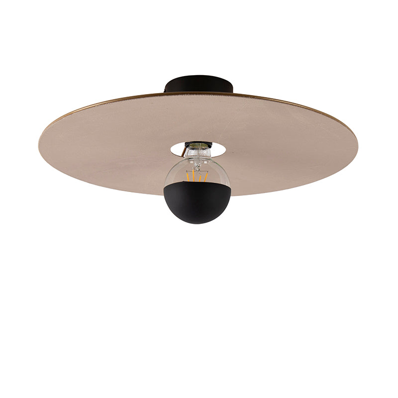 QAZQA Plafondlamp zwart platte kap taupe 45 cm - Combi