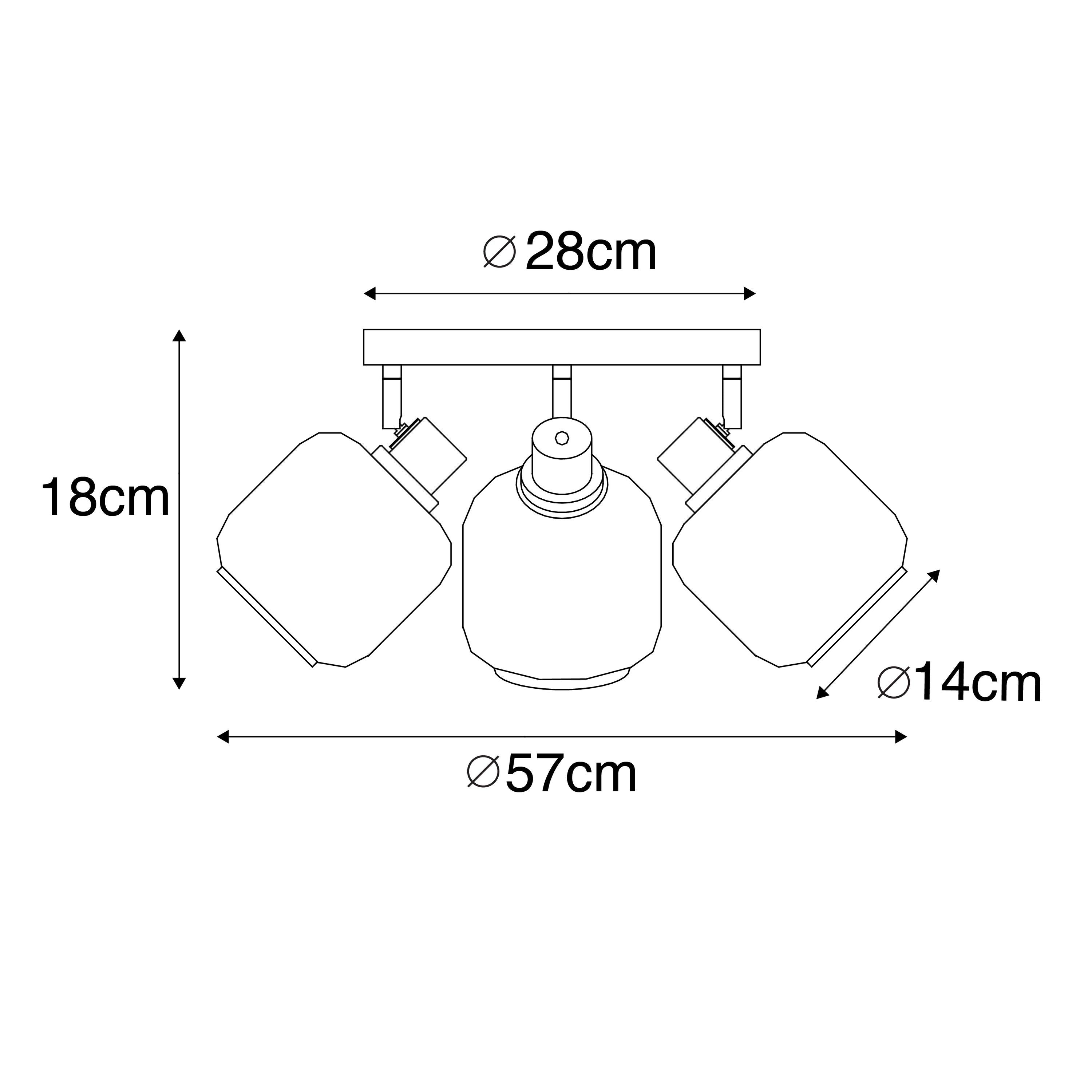 QAZQA Plafondspot zwart met goud met smoke glas 3-lichts - Zuzanna