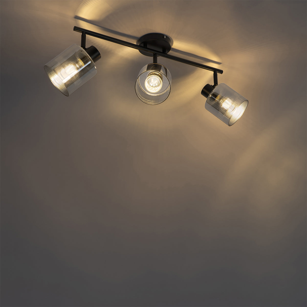 QAZQA Plafondspot zwart met smoke glas 3-lichts verstelbaar - Laura