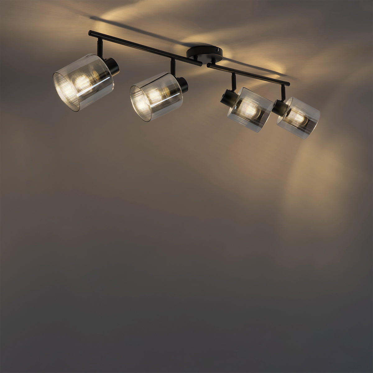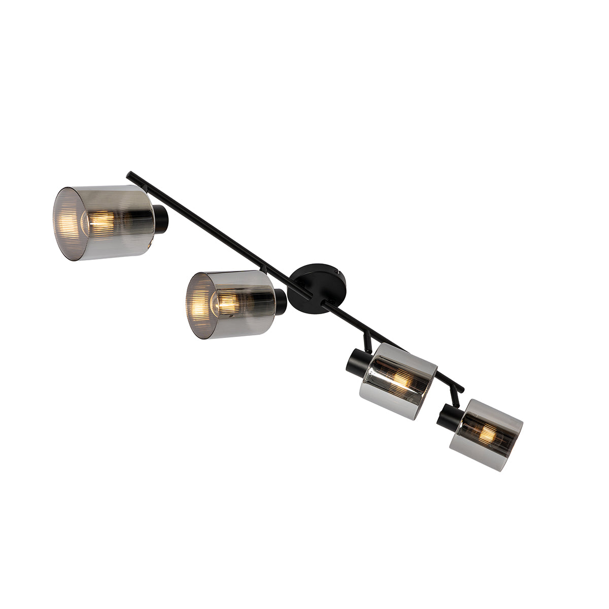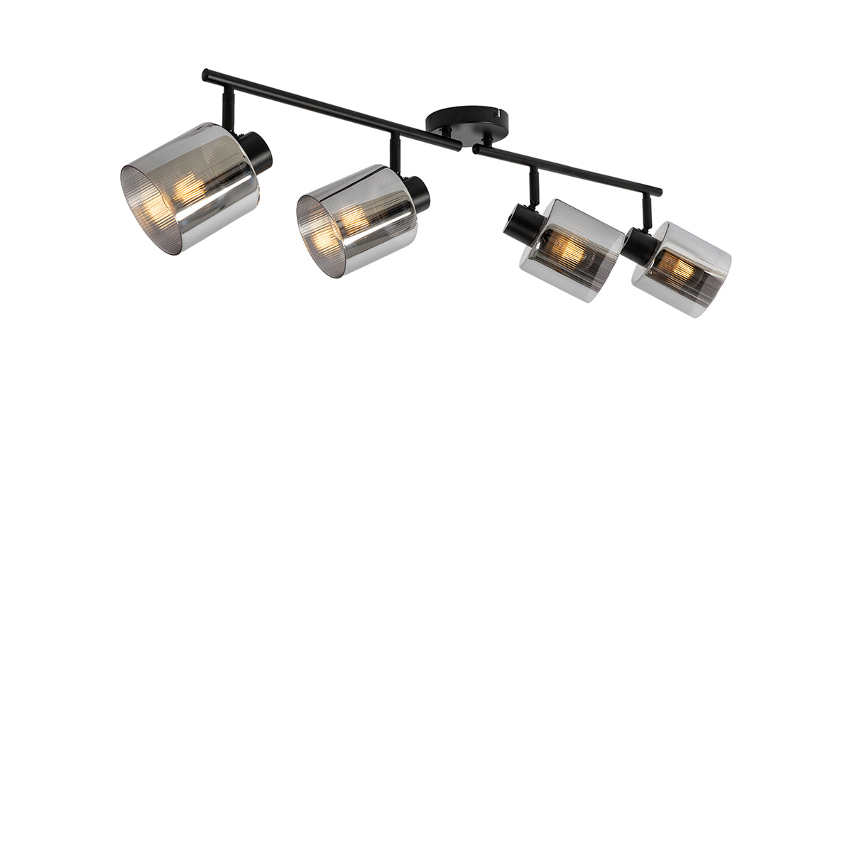 QAZQA Plafondspot zwart met smoke glas 4-lichts verstelbaar - Laura