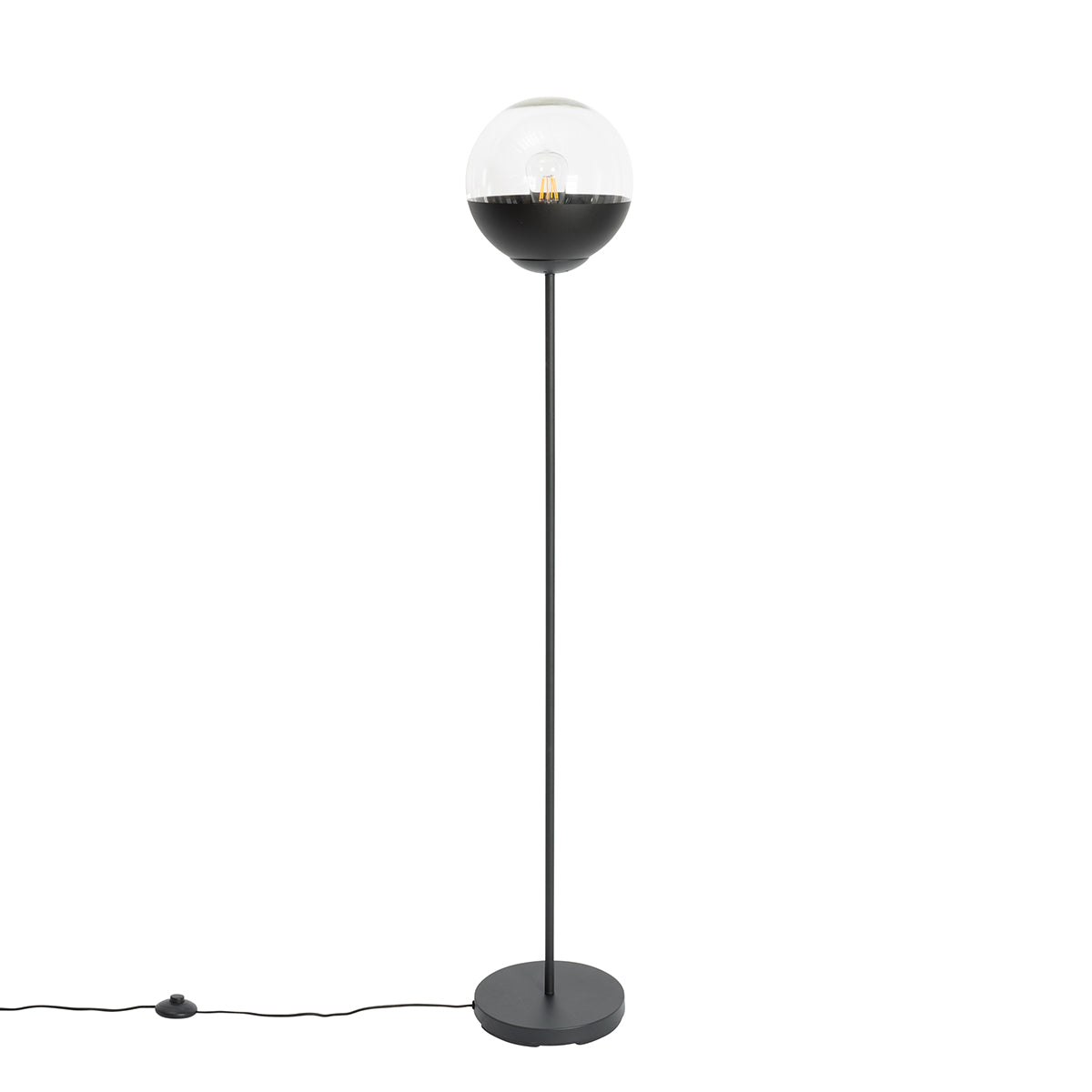 QAZQA Retro vloerlamp zwart met helder glas - Eclipse