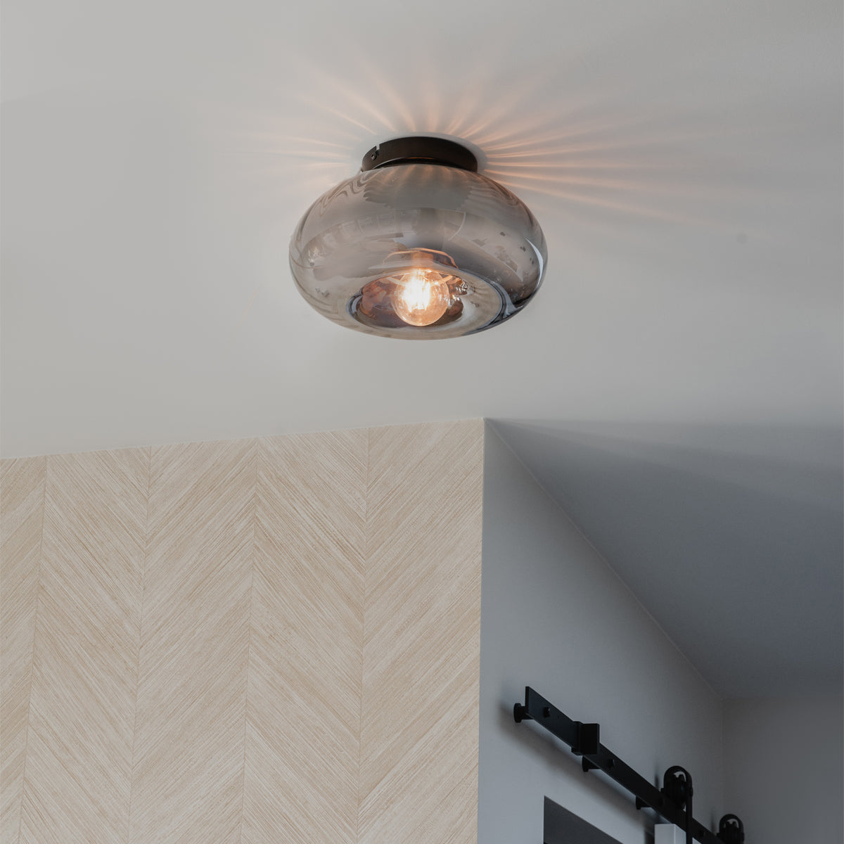 - Het materiaal van de lamp is glas