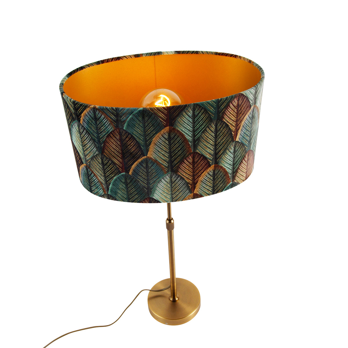 QAZQA Tafellamp brons met ovale velours kap blad design 35cm - Parte