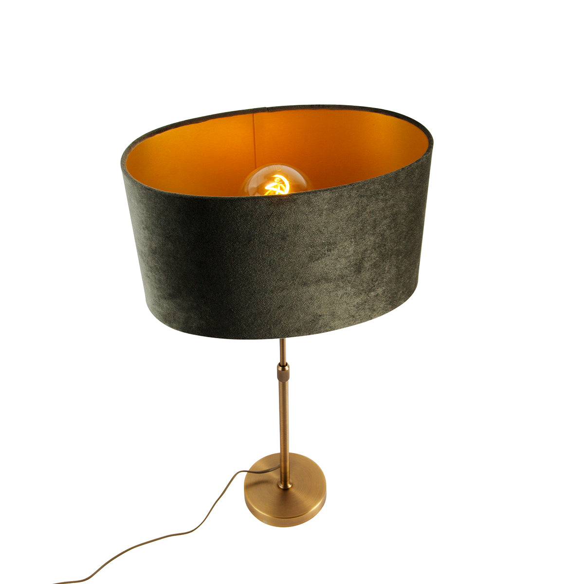 QAZQA Tafellamp brons met ovale velours kap groen 35cm - Parte