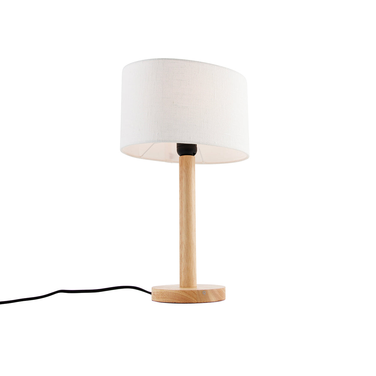 QAZQA Tafellamp hout met ovale linnen kap wit 25cm - Mels