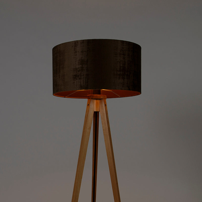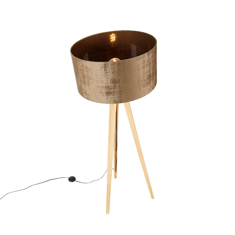 QAZQA Vloerlamp hout met stoffen kap bruin 50 cm - Tripod Classic