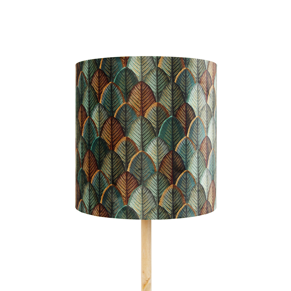 QAZQA Vloerlamp hout met velours lampenkap blad dessin met gouden
