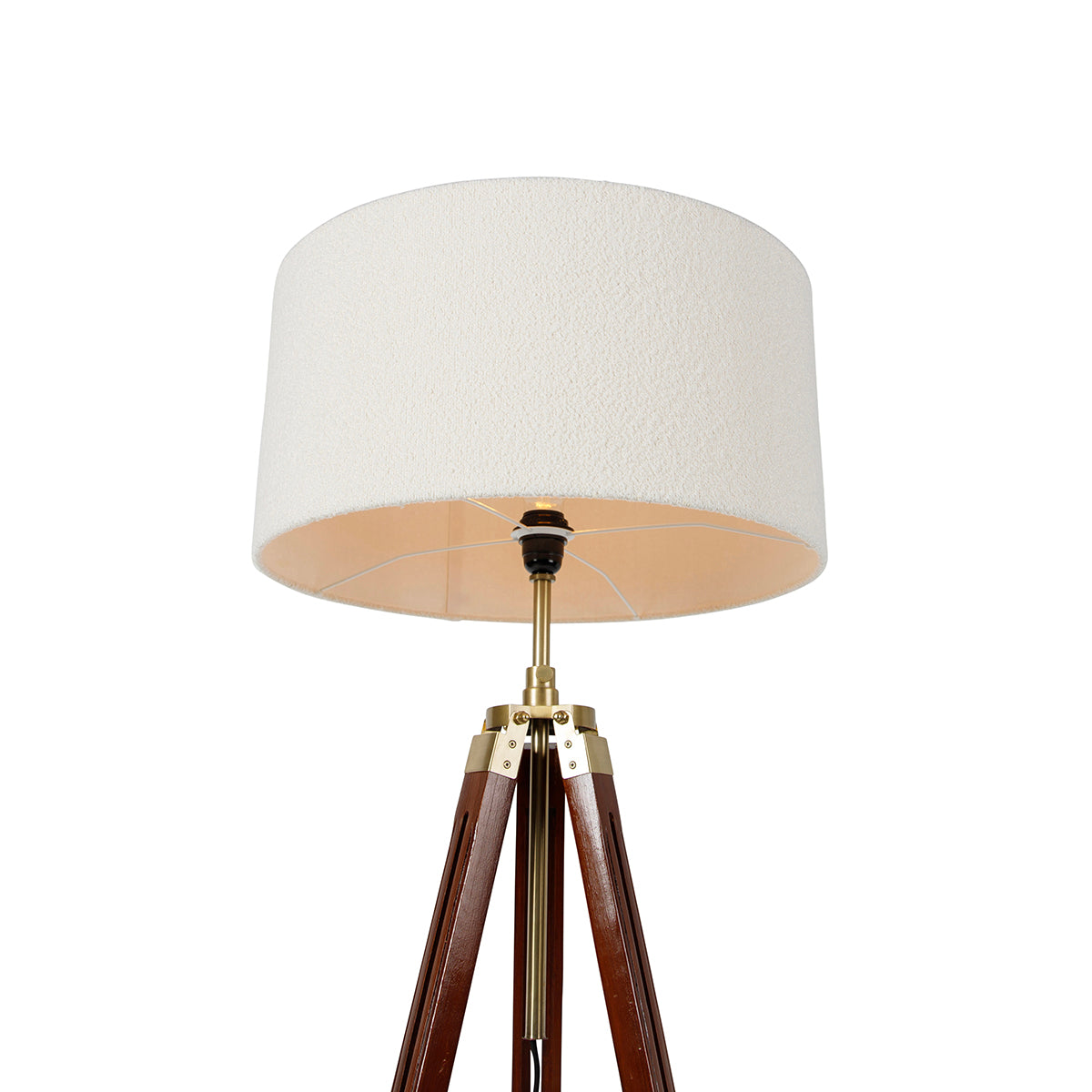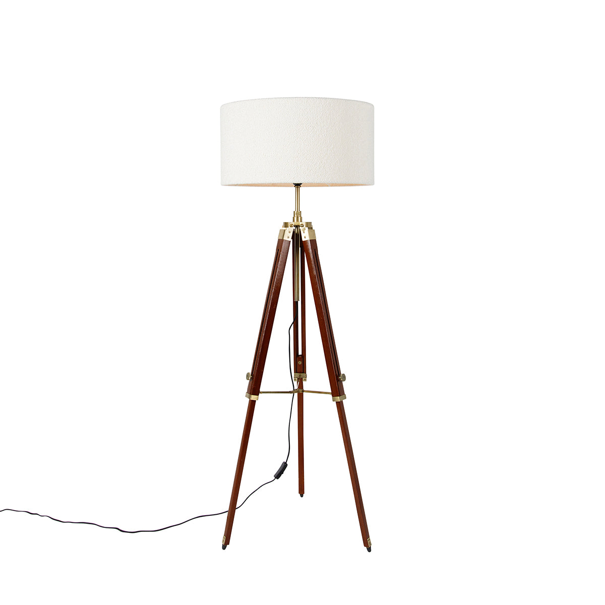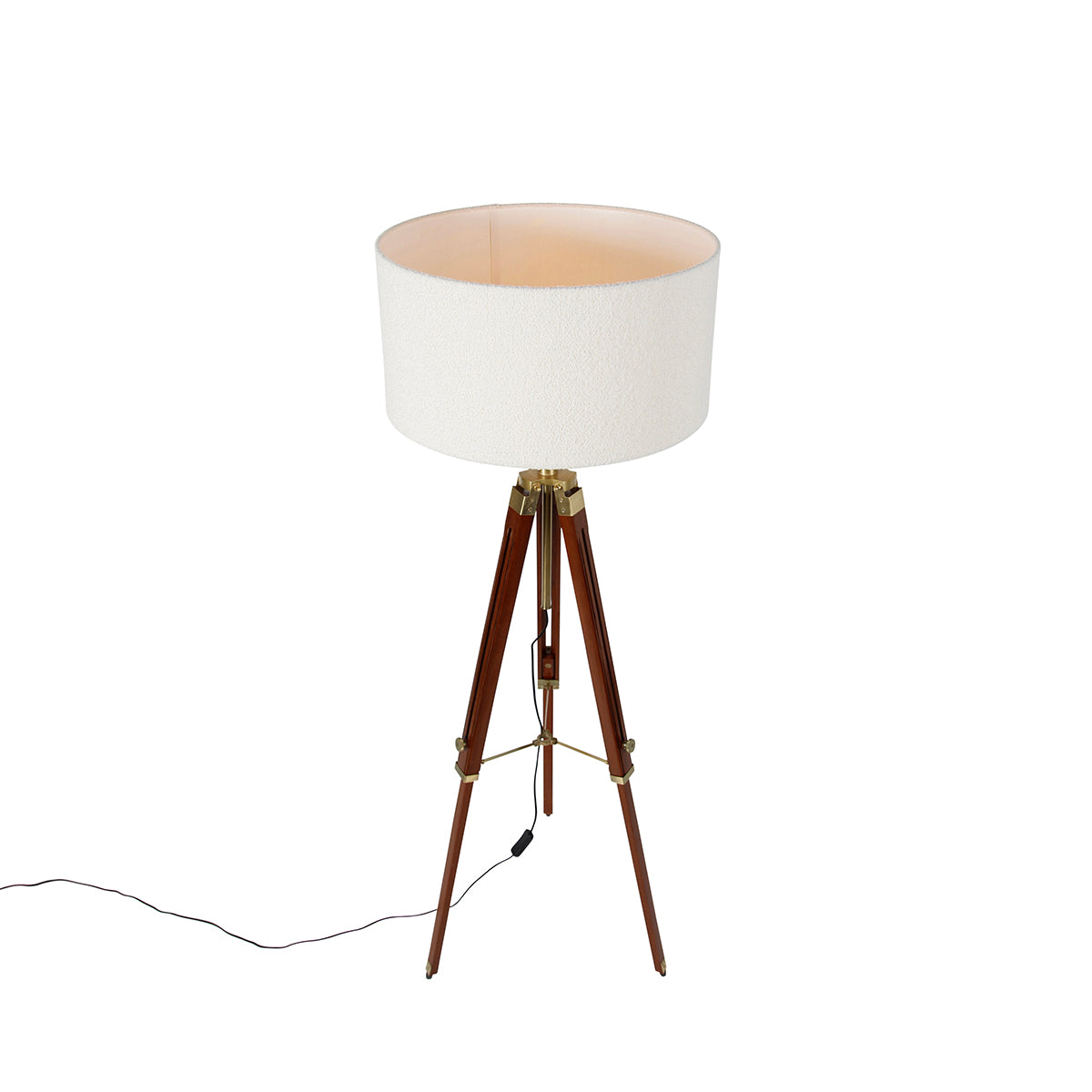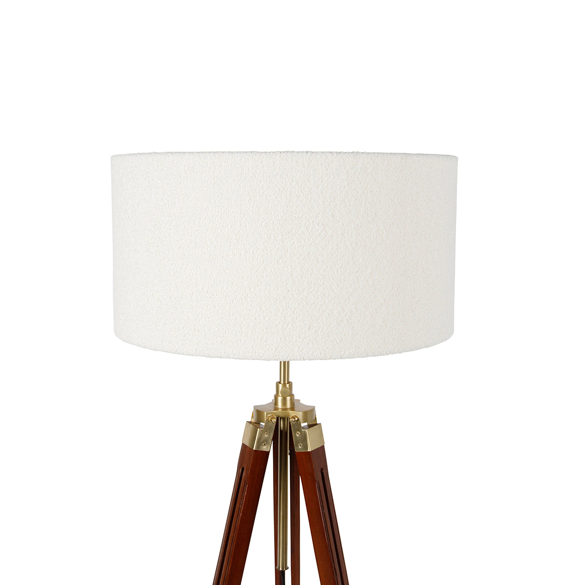 QAZQA Vloerlamp messing met boucle kap wit 50 cm tripod - Cortin