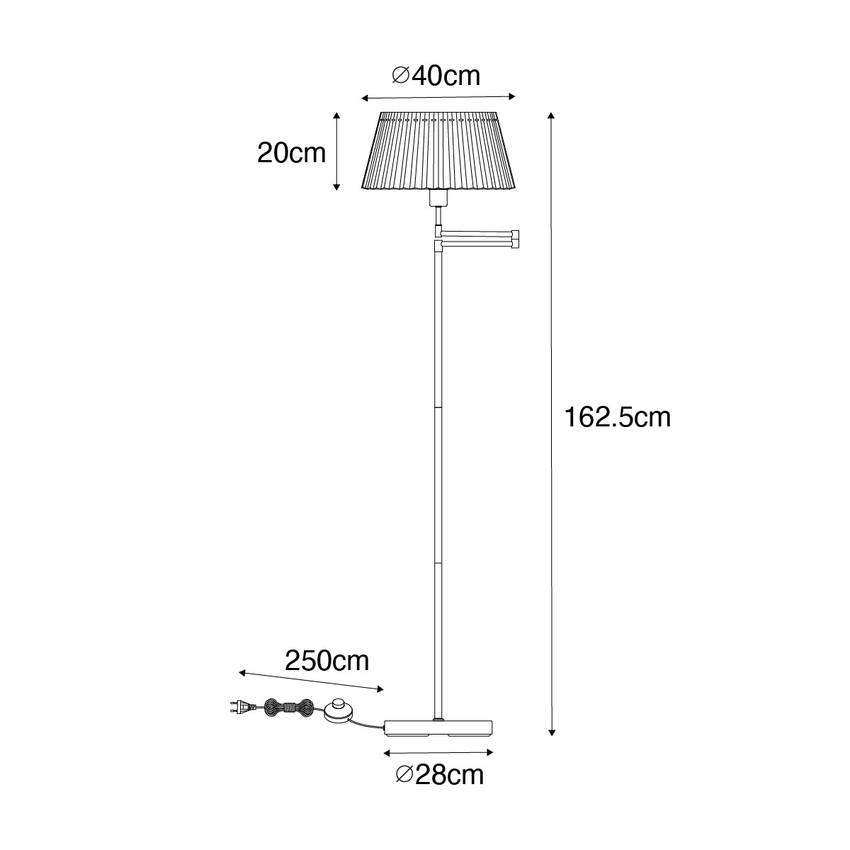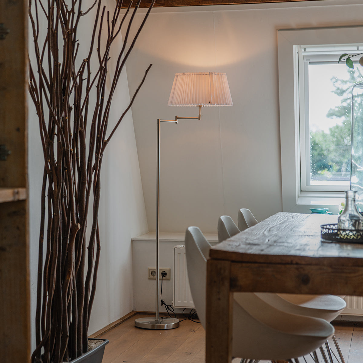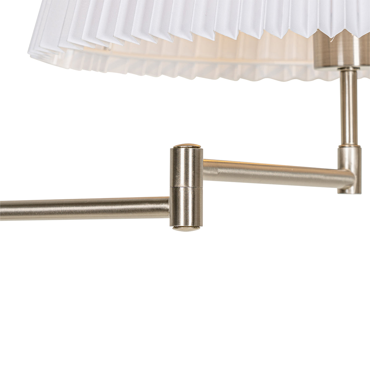 QAZQA Vloerlamp staal met witte plisse kap en verstelbare arm - Ladas