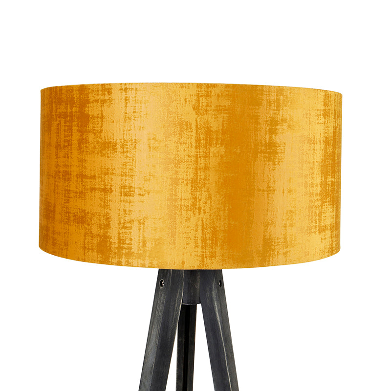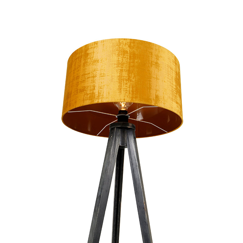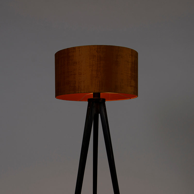 QAZQA Vloerlamp tripod zwart met kap goud 50 cm - Tripod Classic
