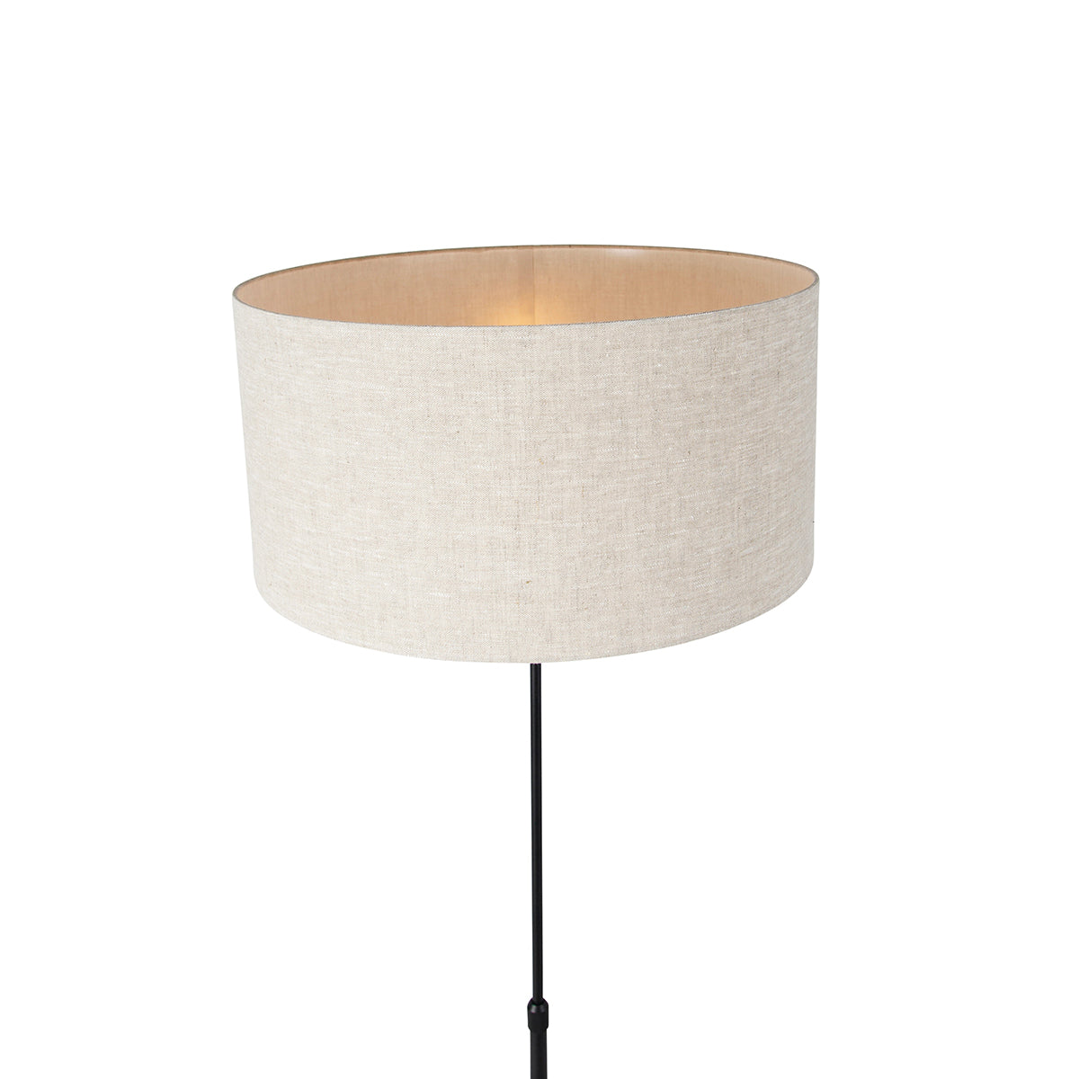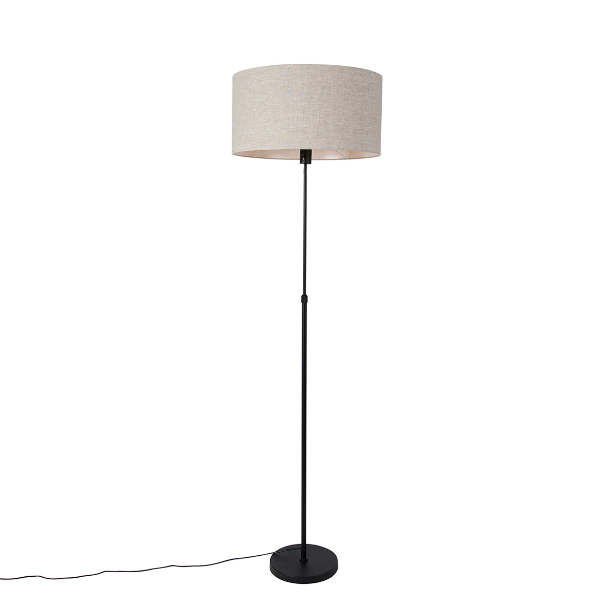 QAZQA Vloerlamp zwart verstelbaar met kap lichtgrijs 50 cm - Parte