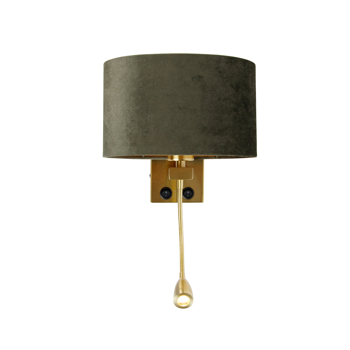 QAZQA Wandlamp messing met ovale velours kap groen 25cm - Brescia