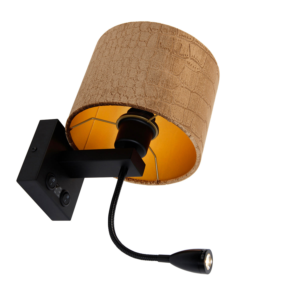 QAZQA Wandlamp zwart met velours kap krokodil dessin 18cm - Brescia