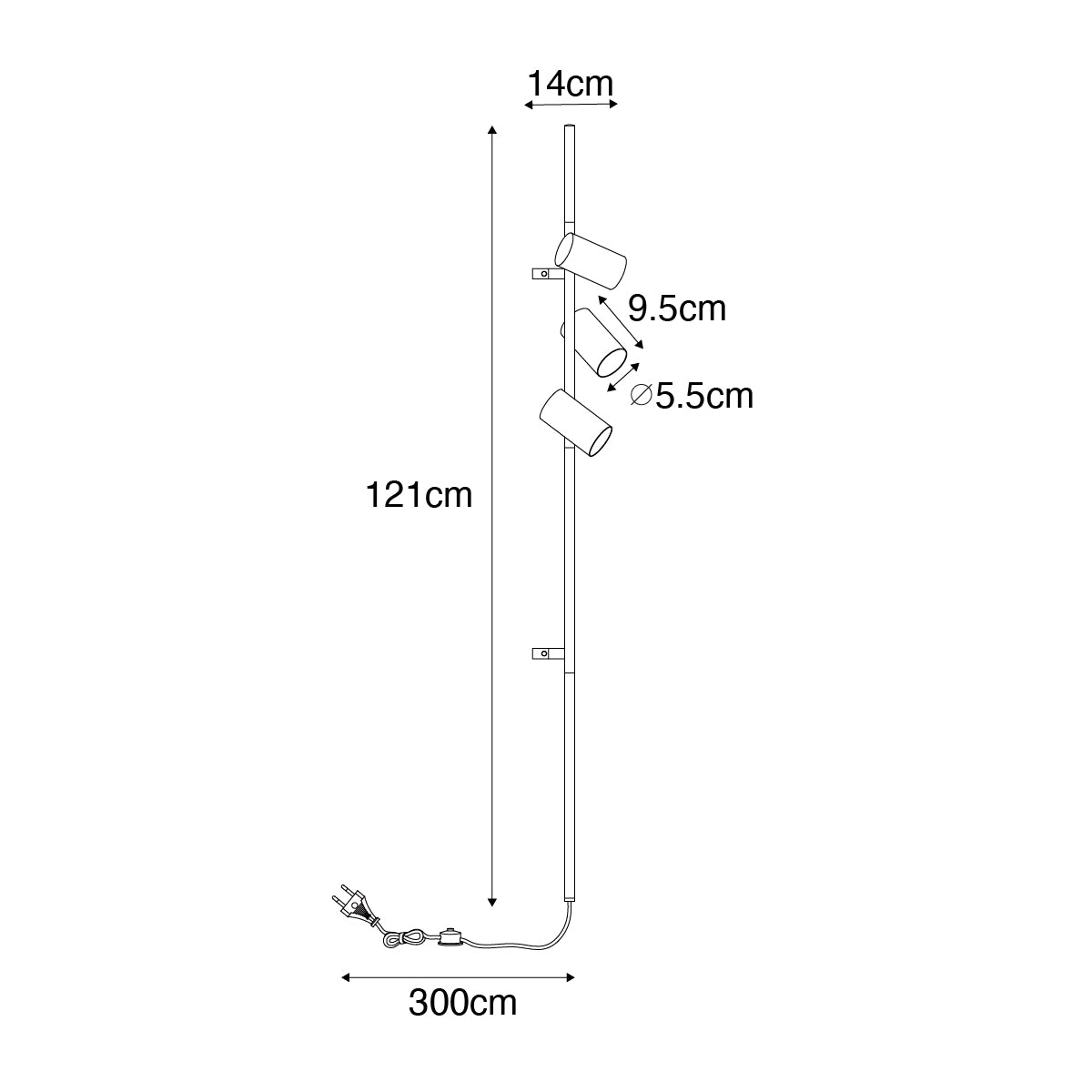 QAZQA Wandlamp zwart met voetschakelaar 3-lichts - Jeana Luxe