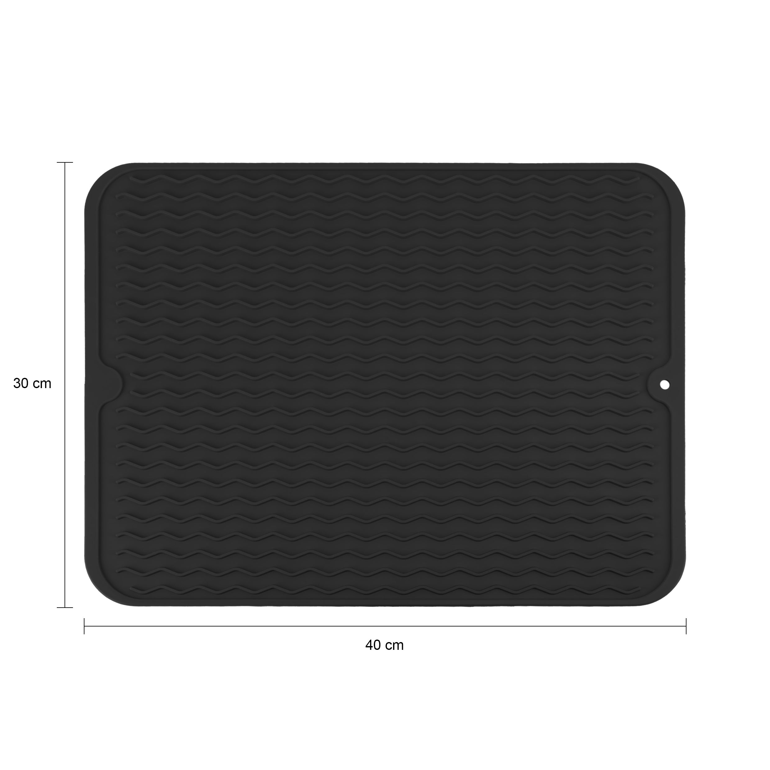 Laat je afwas drogen op deze afdruipmat De afwas doen is voor veel mensen niet hun favoriete klusje. Met de QUVIO afdruipmat maak je dit klusje een stuk eenvoudiger en leuker. Plaats na het afwassen het servies, glaswerk en pannen op de afdruipmat en je aanrecht blijft verder perfect droog. Bovendien droogt de afwas snel op deze speciale afwas droogmat. De zwarte kleur is daarbij ook nog een fijne toevoeging aan het interieur van je keuken. De kleur is eenvoudig te combineren en past goed in elke inrichting. Producteigenschappen