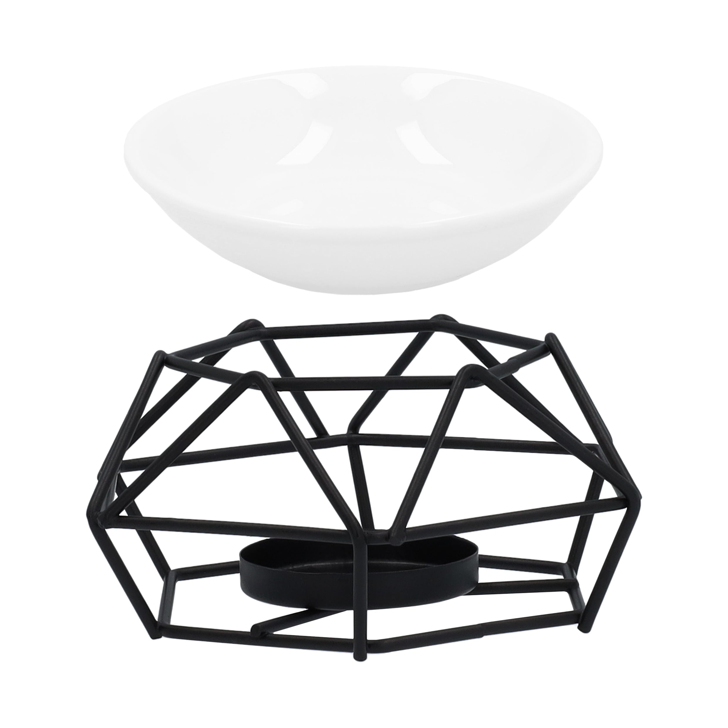 - Onderin de geurverspreider zet je een waxinelichtje en in het witte bakje doe je water met een paar druppels etherische olie.