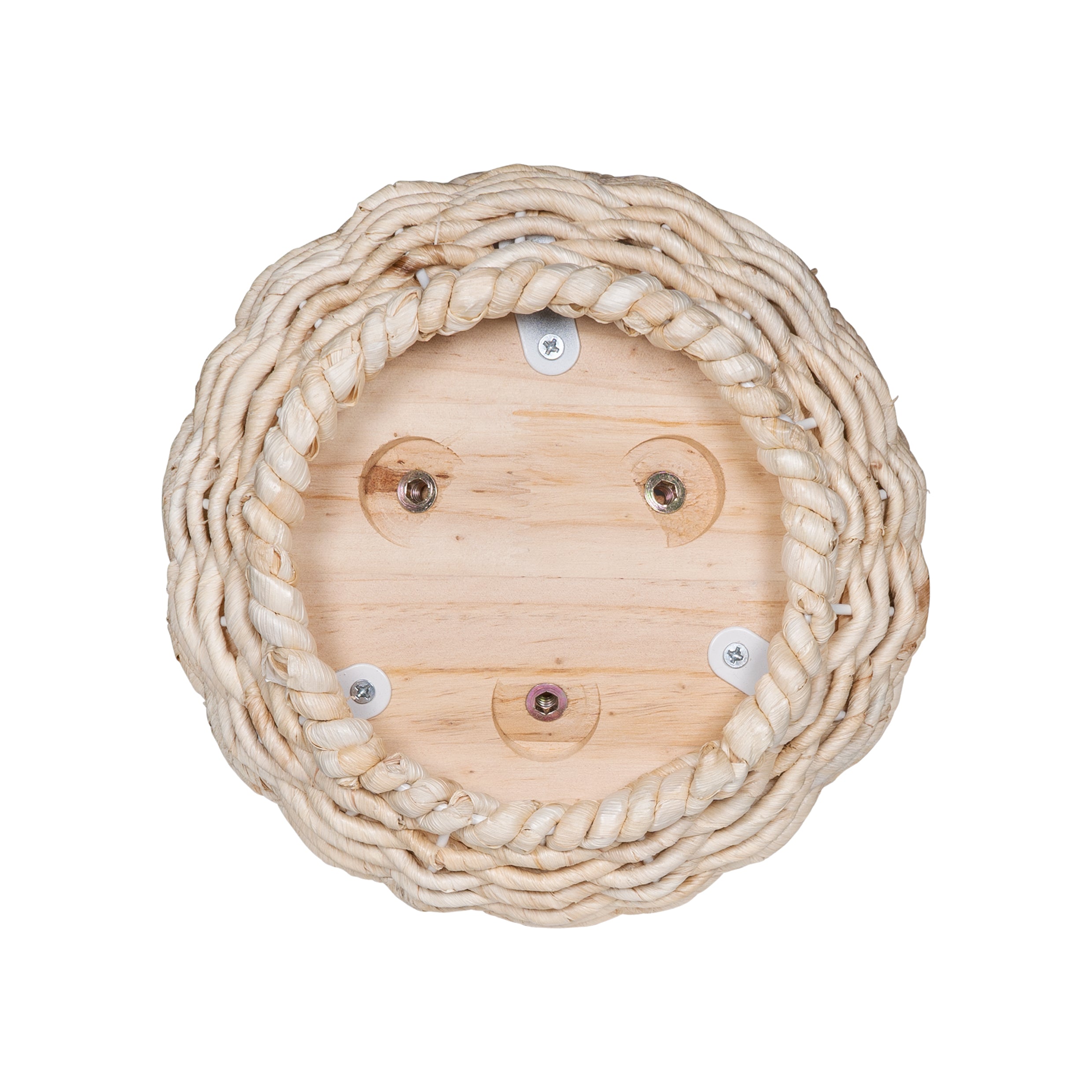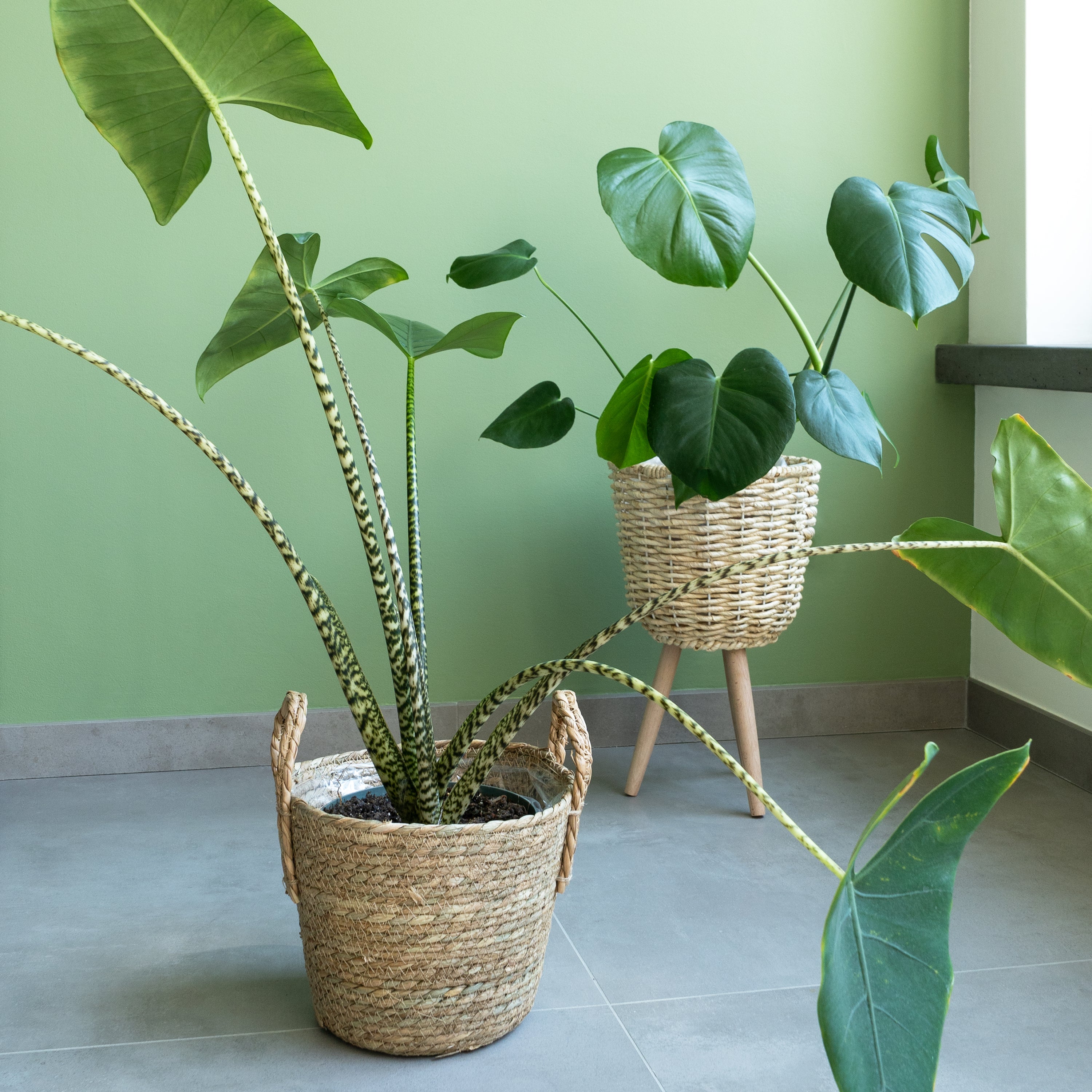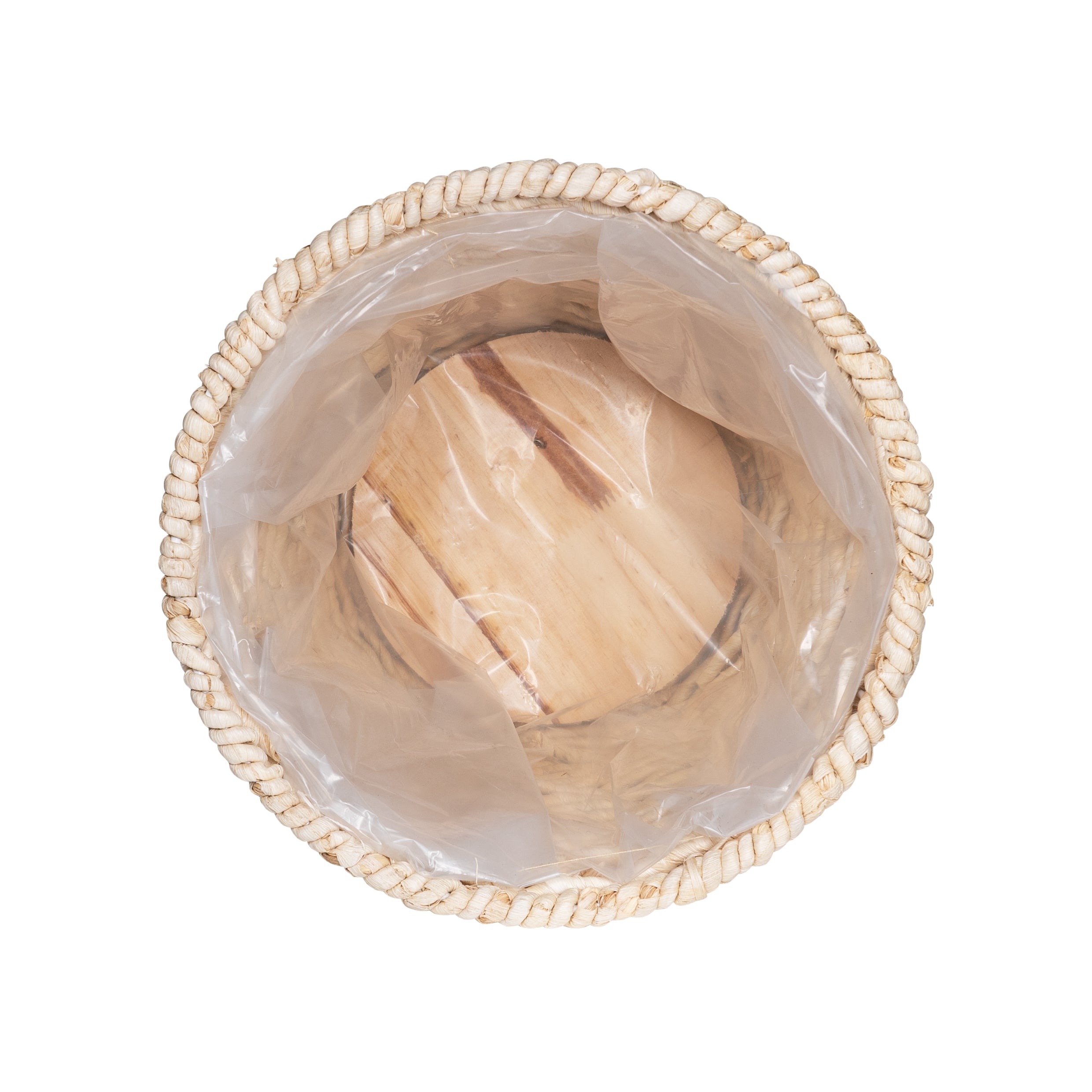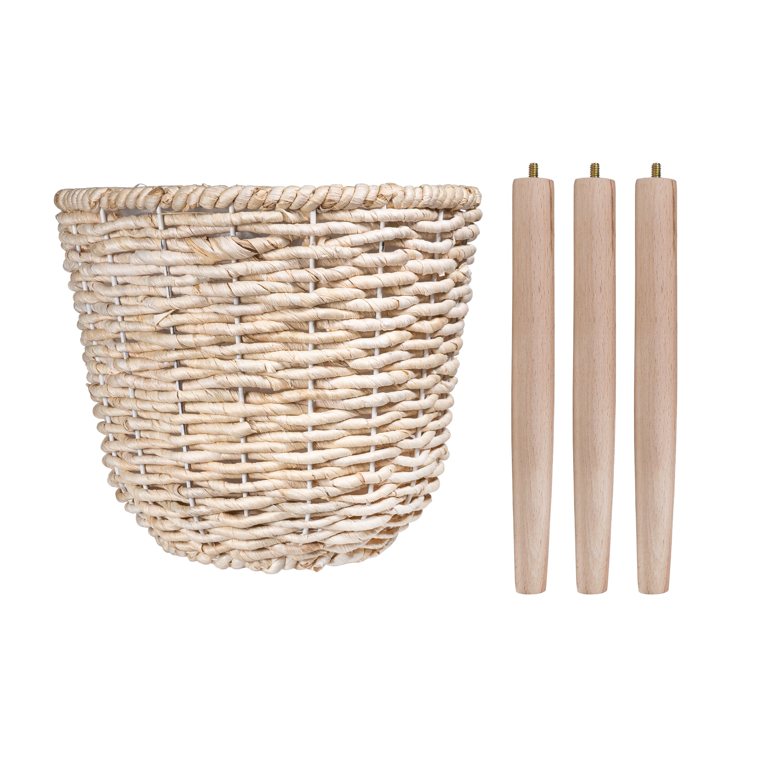 - Deze QUVIO Plantenmand op driepoot is gemaakt van raffia en hout.