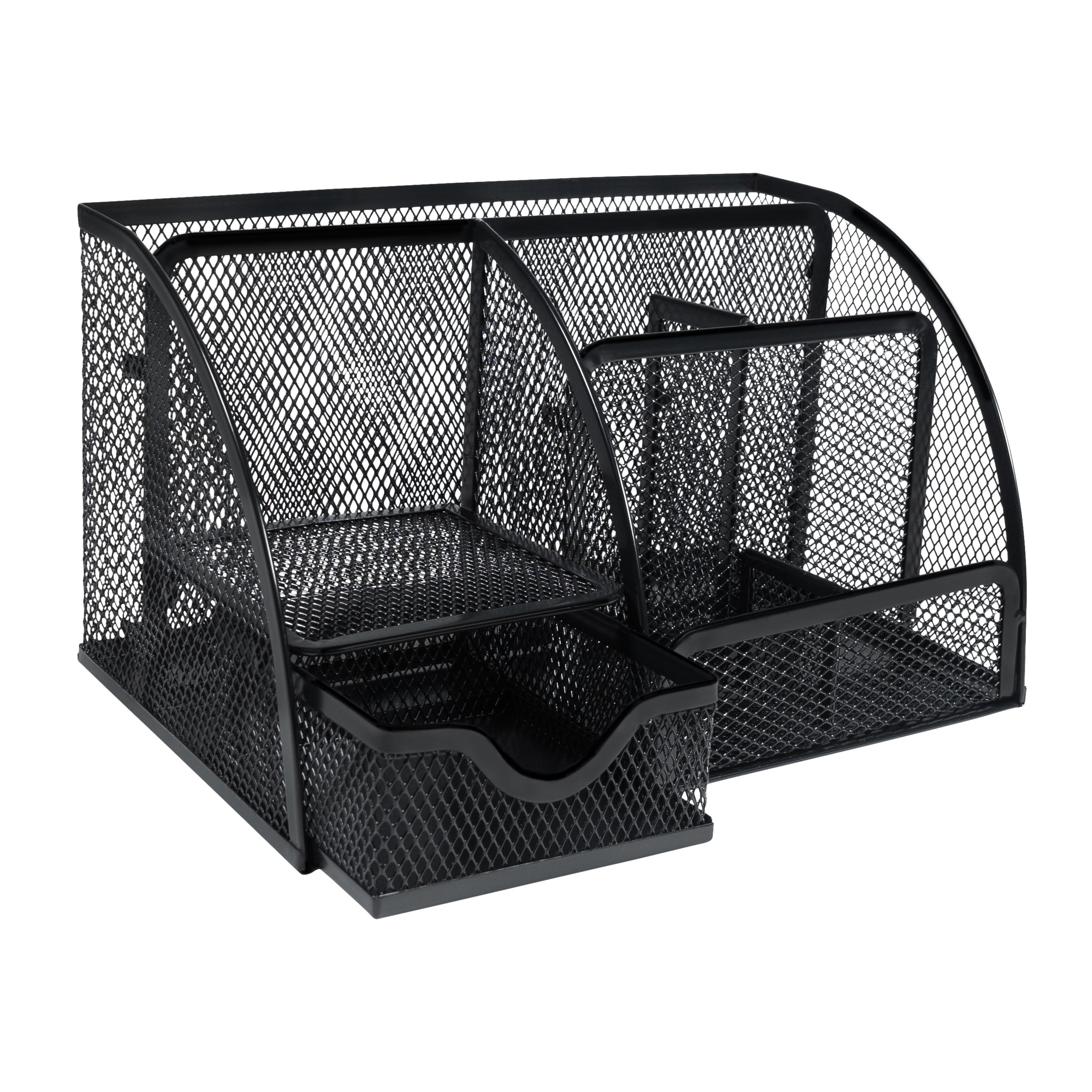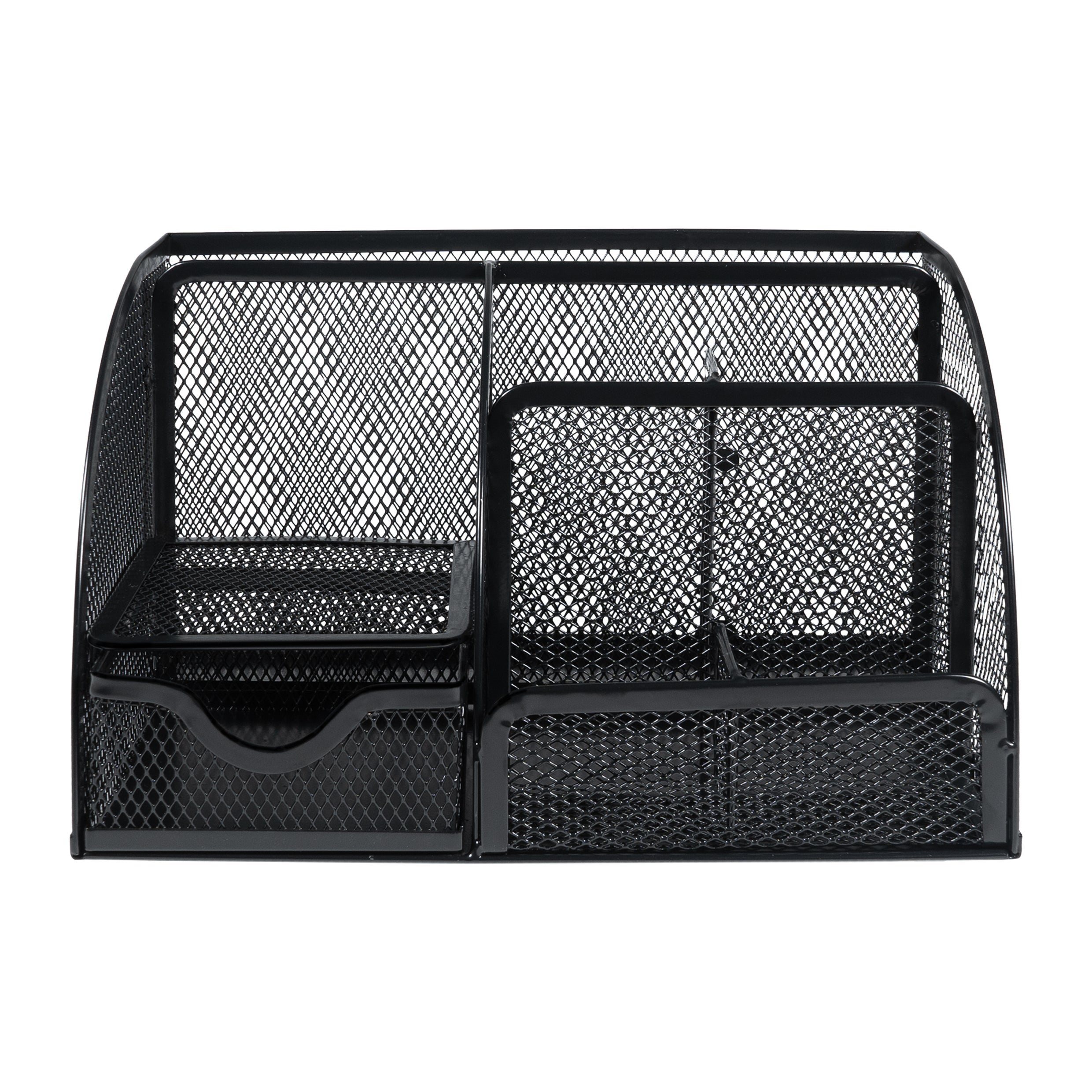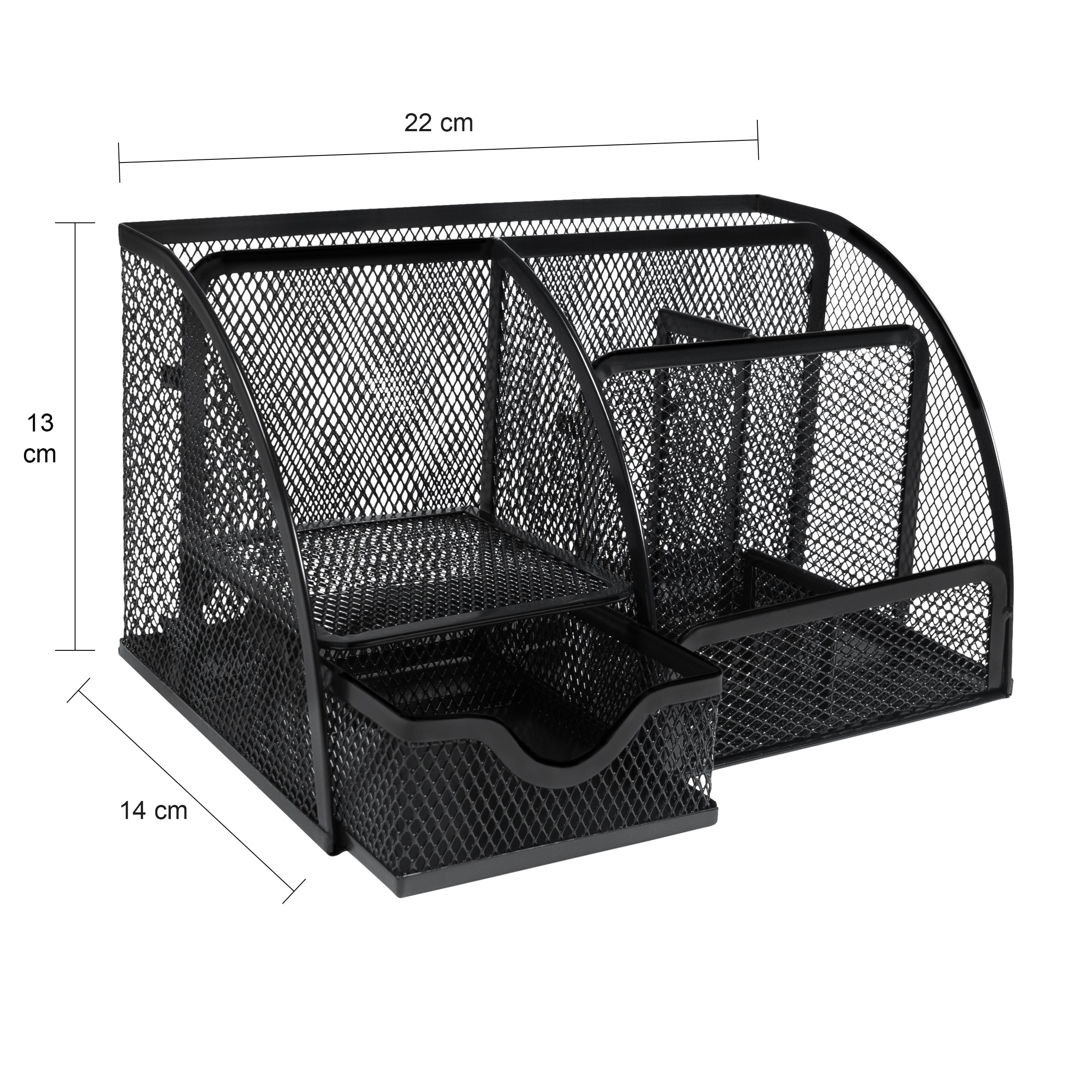 QUVIO Bureau organizer 5 vakken + 1 lade + 1 plankje met gaas - Zwart