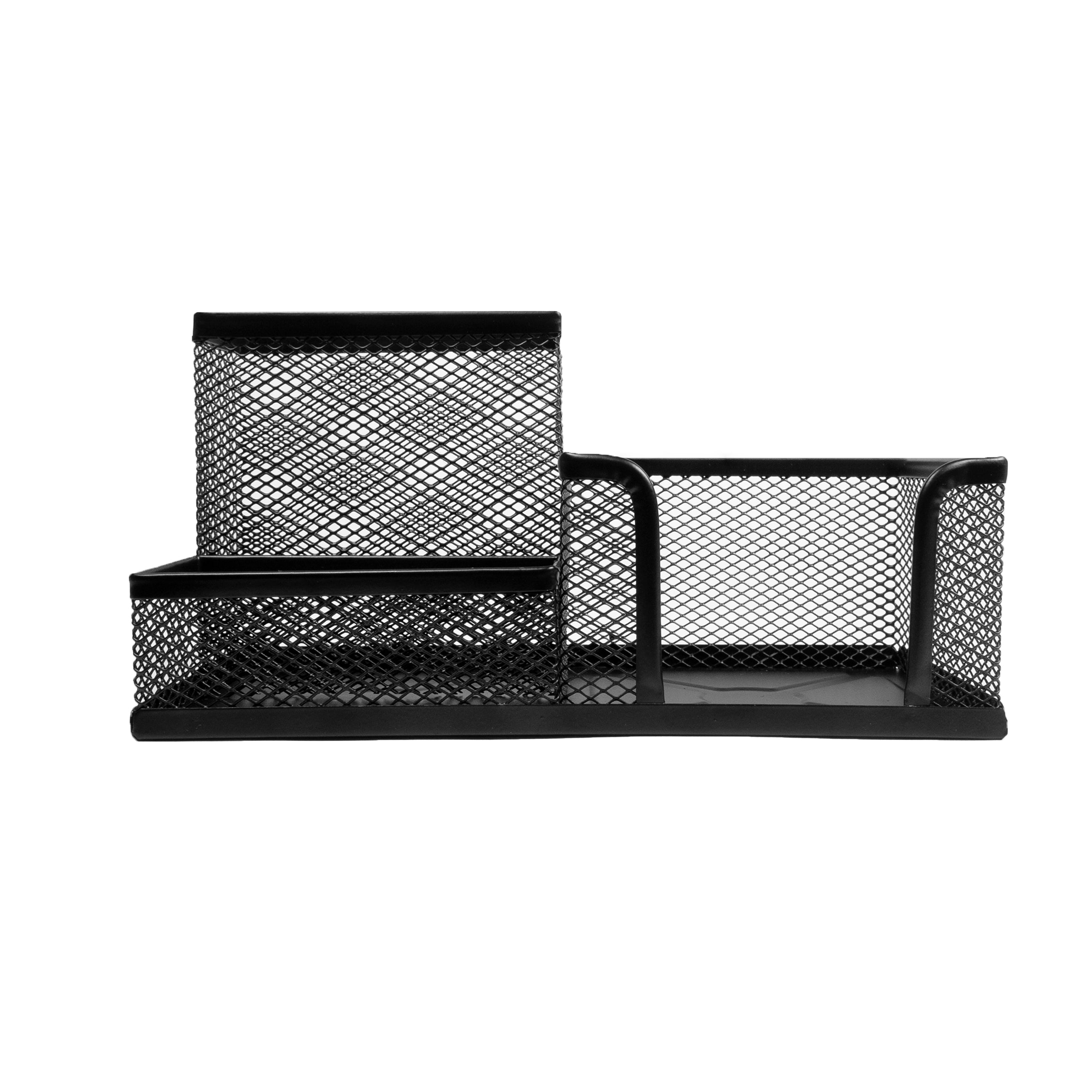QUVIO Bureau organizer met 3 vakken Deze QUVIO bureau organizer is ideaal om spullen die je dagelijks aan je bureau gebruikt op nette en opgeruimde wijze op te plaatsen. De organizer kan voor diverse spullen worden gebruikt, van pennen tot aan papieren, boeken en onderdelen van bijvoorbeeld je laptop. Niet alleen thuis aan je bureau is de organizer erg handig, maar ook bijvoorbeeld op het werk op kantoor. De organizer heeft diverse voordelen. Het zorgt zoals gezegd voor een veel opgeruimder en overzichtelijker bureau. Netjes werken is een stuk fijner. Daarnaast geeft de QUVIO bureau organizer ook een elegante uitstraling en ziet het er op een bureau erg mooi uit. Je kunt er veel spullen in kwijt zonder dat deze door elkaar gaan. Je weet altijd waar wat ligt. Specificaties De bureau organizer is een organizer van staal en een organizer van gaas als het gaat om de materialen waaruit het product bestaat. De kleur is volledig zwart wat ervoor zorgt dat hij in diverse ruimtes goed past. Hij is niet storend voor het oog en matcht door de kleur met vrijwel iedere kleur eromheen. Het product heeft een totale breedte van 20 centimeter. Daarnaast is de lengte van de QUVIO bureau organizer in totaal 10 centimeter. Ook de hoogte van de organizer is 10 centimeter. Door deze maten is het product niet te groot voor op het bureau maar past wel alles wat nodig is erin.