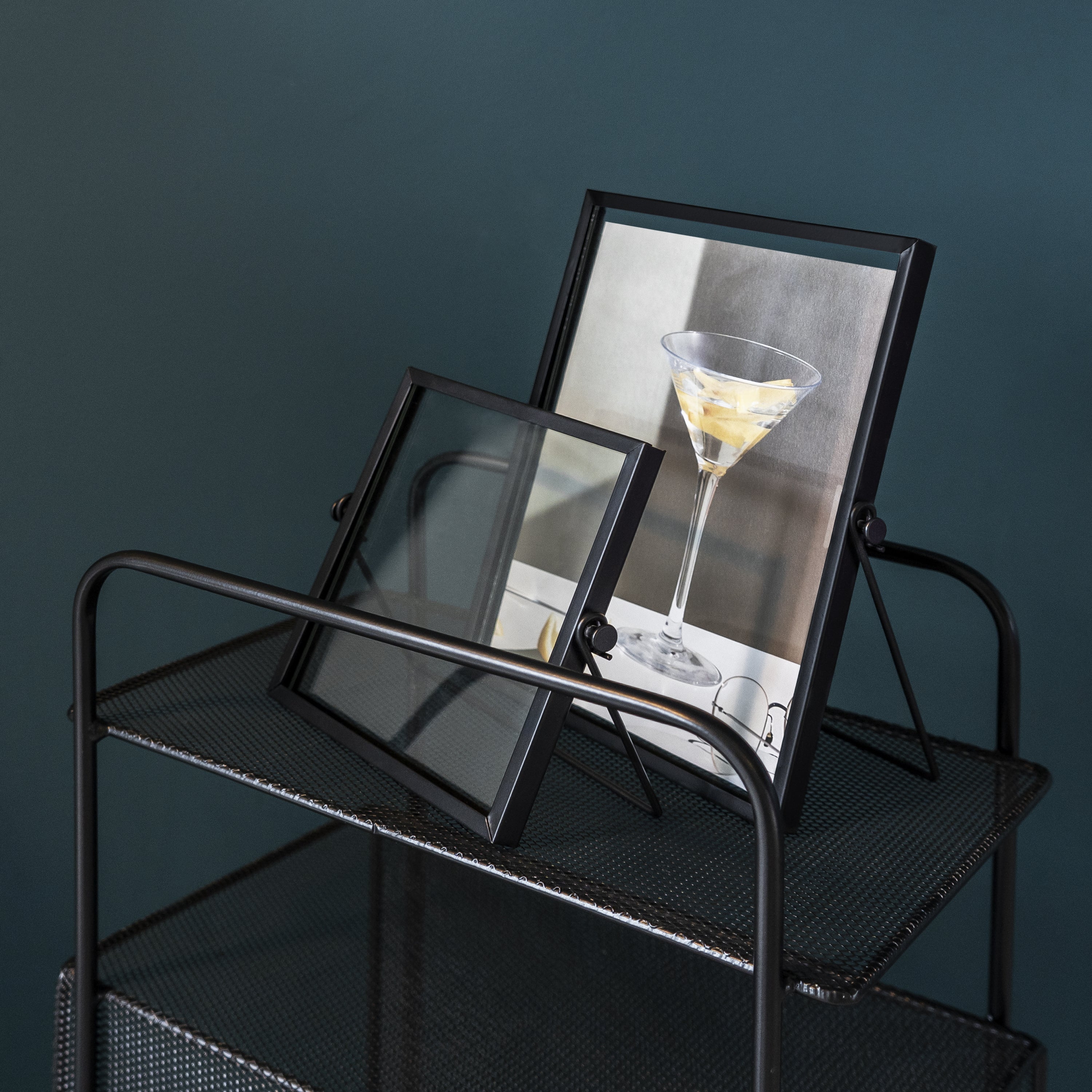 Eenvoudig, stoer en stijlvol is hoe je deze QUVIO fotolijst kunt omschrijven. Hij is gemaakt van staal en glas. De breedte is 15 cm, hoogte is 15 cm en als het pootje is uitgeklapt, is de diepte 6,5 cm. Hij is in zwarte uitvoering verkrijgbaar.