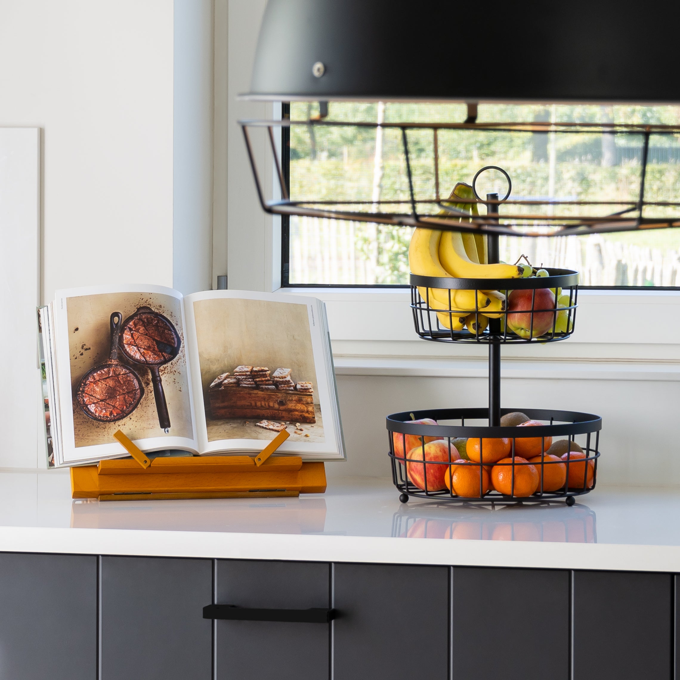 - Zo past deze tweelaagse fruitmand perfect in een industrieel interieur, maar misstaat het ook zeker niet in een modern ingericht huis.