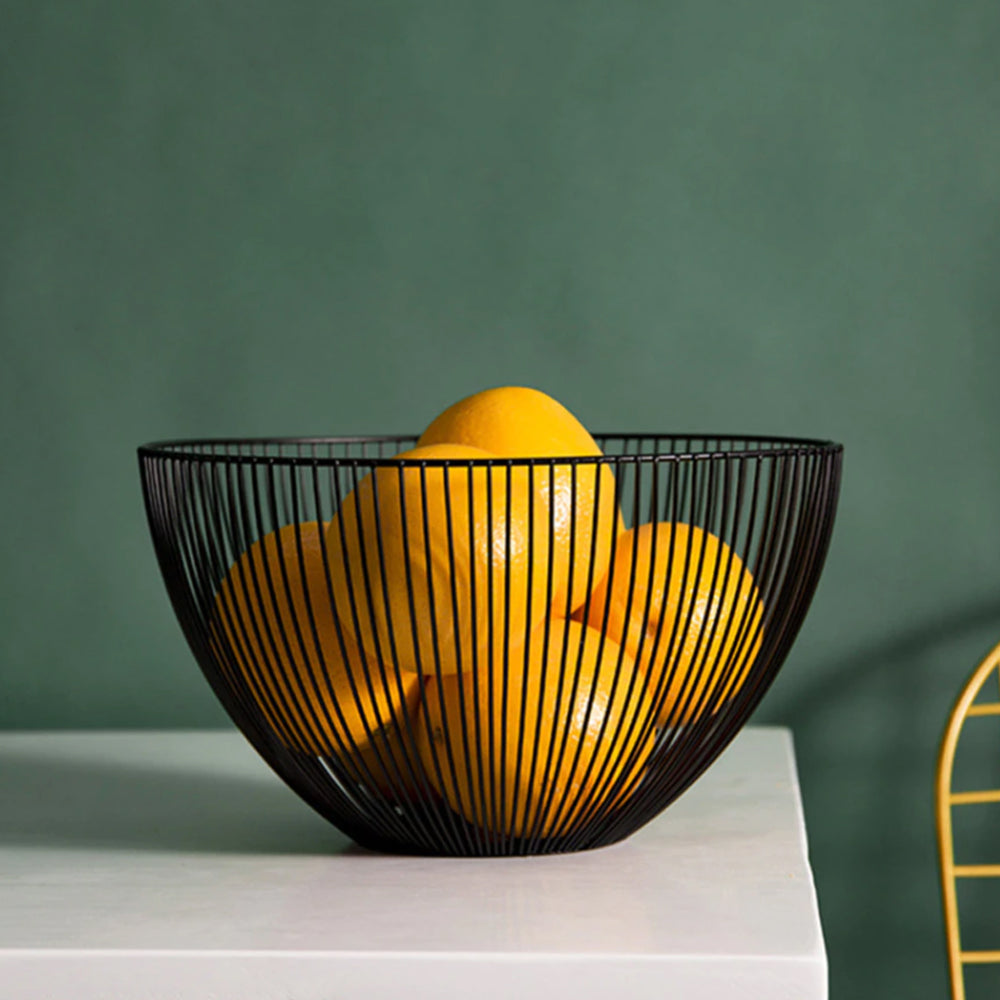 QUVIO Fruitschaal - Draadstaal De QUVIO Fruitschaal zwart is het ideale woonaccessoire om uw fruit in neer te leggen. De mooie fruitschaal is gemaakt van metaal. De schaal is verkrijgbaar in zwart. Natuurlijk kan je de fruitschaal voor meerdere doeleinden gebruiken. De fruitschaal heeft een tijdloos uiterlijk waardoor hij in ieder interieur mooi tot uiting komt. Dit maakt de fruitschaal ideaal voor elke woonruimte. Je kan de schaal eerst een periode in de keuken zetten, waarna je deze een periode op een andere plaats in huis zet bijvoorbeeld in de woonkamer of hal. Door het speciale ontwerp van de schaal kan het fruit sneller rijpen, omdat het op deze manier meer zon kan vangen dan dat de afwerking van de schaal helemaal dicht zou zijn. Kenmerken QUVIO Fruitschaal zwart