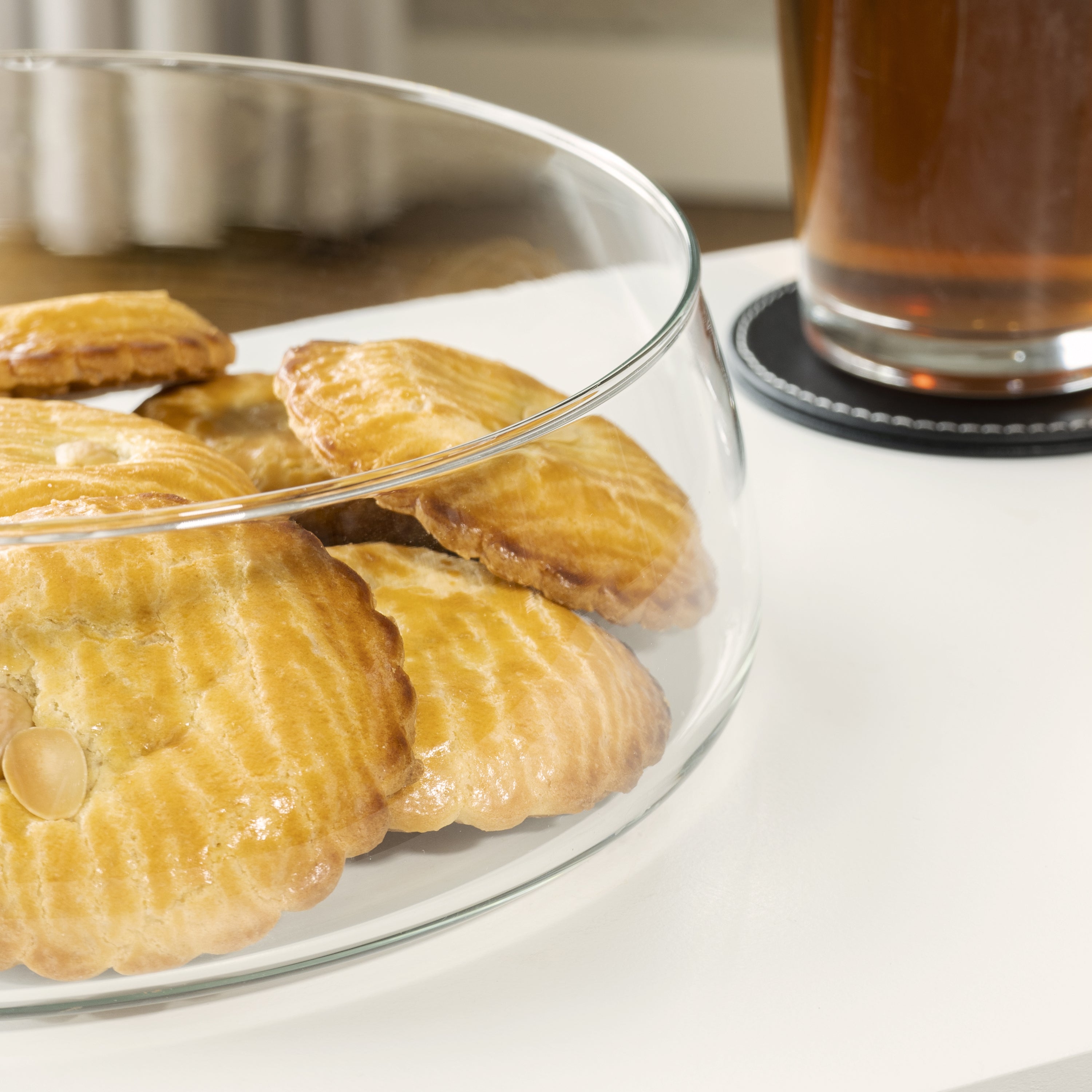 - Deze grote glazen opbergdoos met een diameter van 23 cm en een hoogte van 8 centimeter.