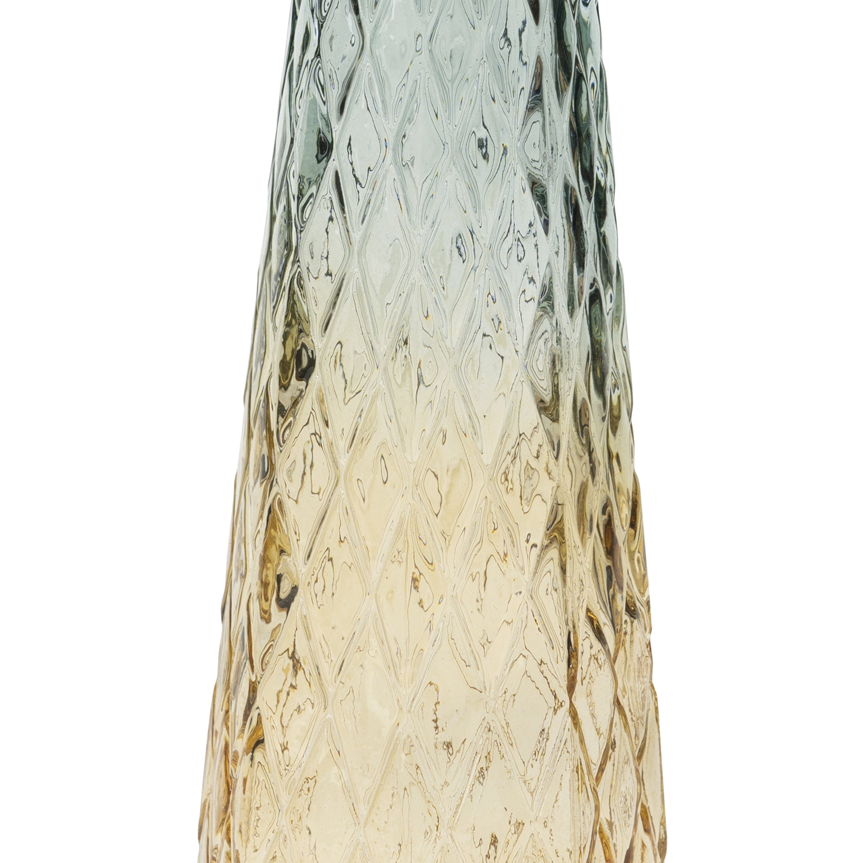 - Bij deze vaas lopen een subtiele blauwe en gele toon in elkaar over en heeft het glas mooie details.