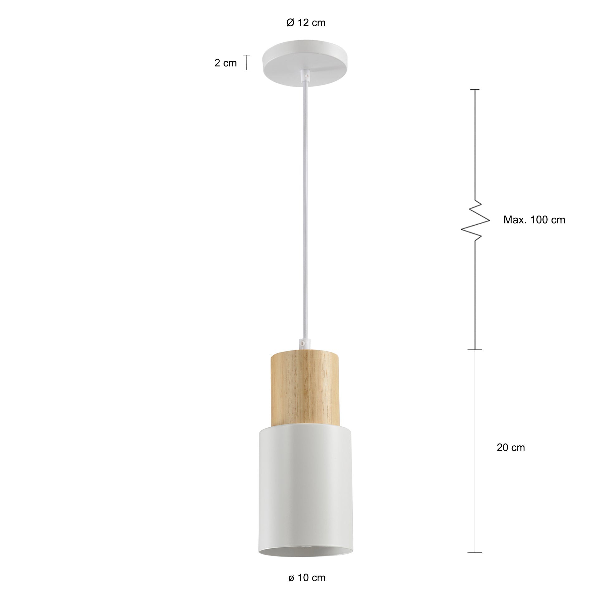 - De afmetingen van de lamp zijn: 10 x 10 x 20 cm (lxbxh), en heeft een E27 fitting. De maximale snoerlengte is 100 cm en kunt u eenvoudig inkorten.