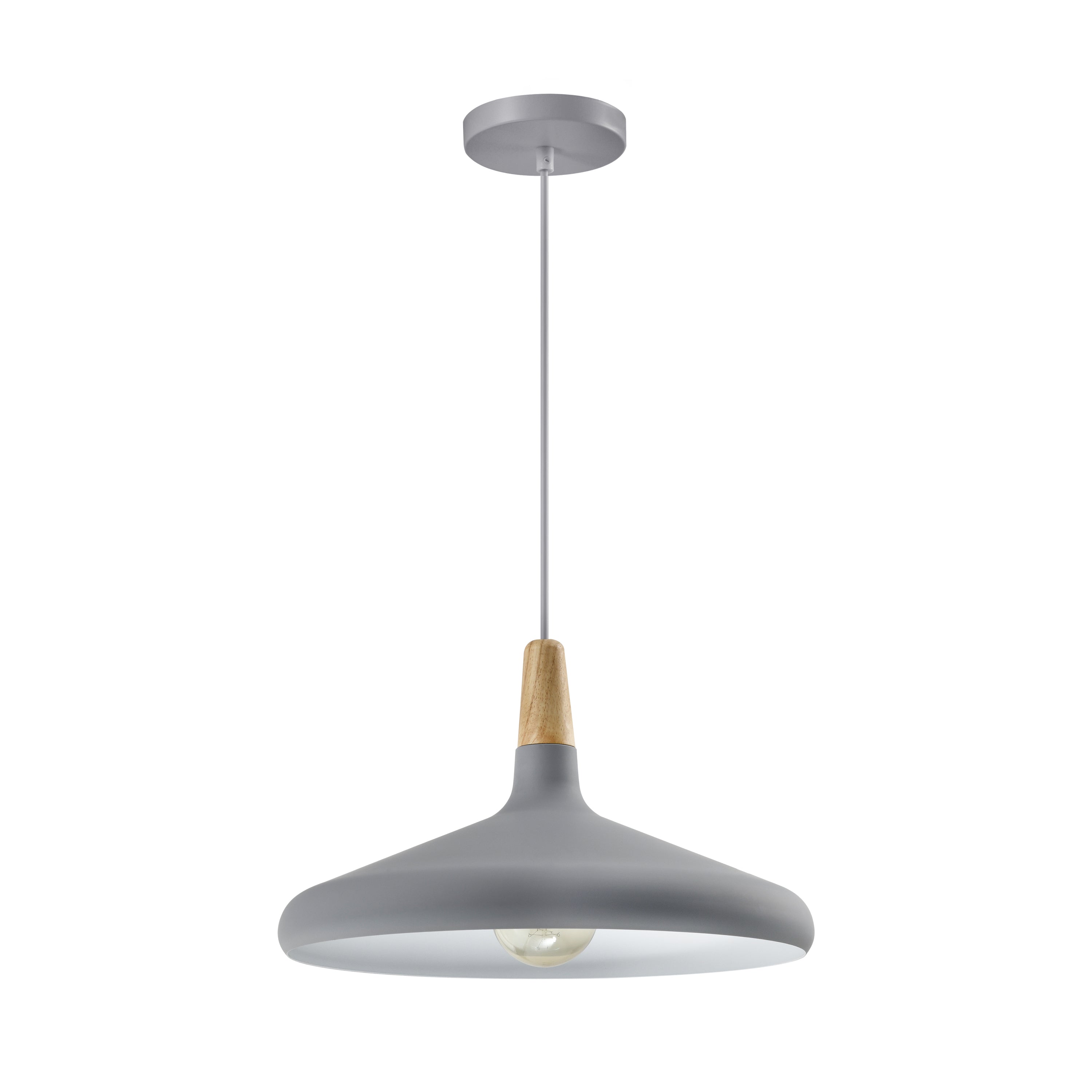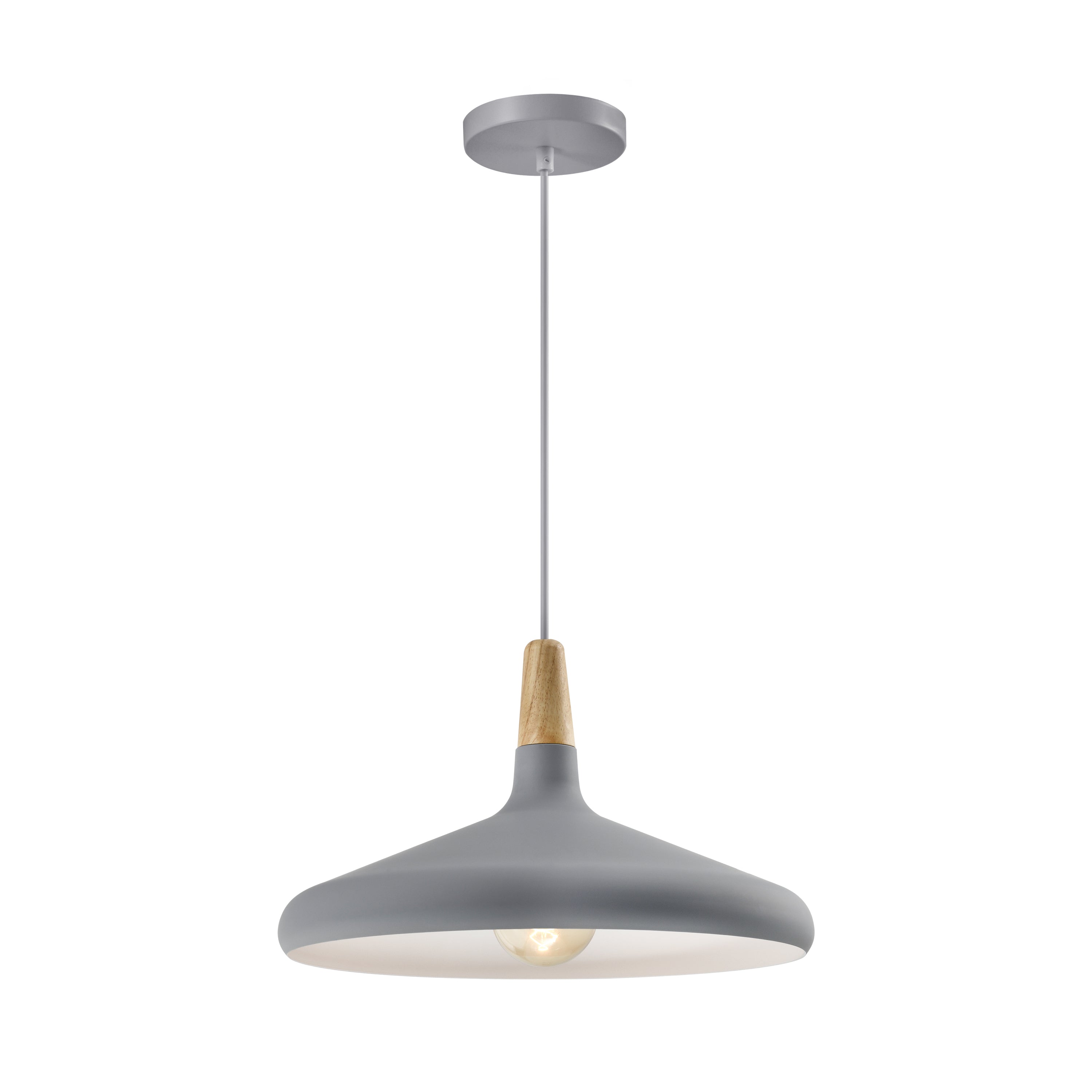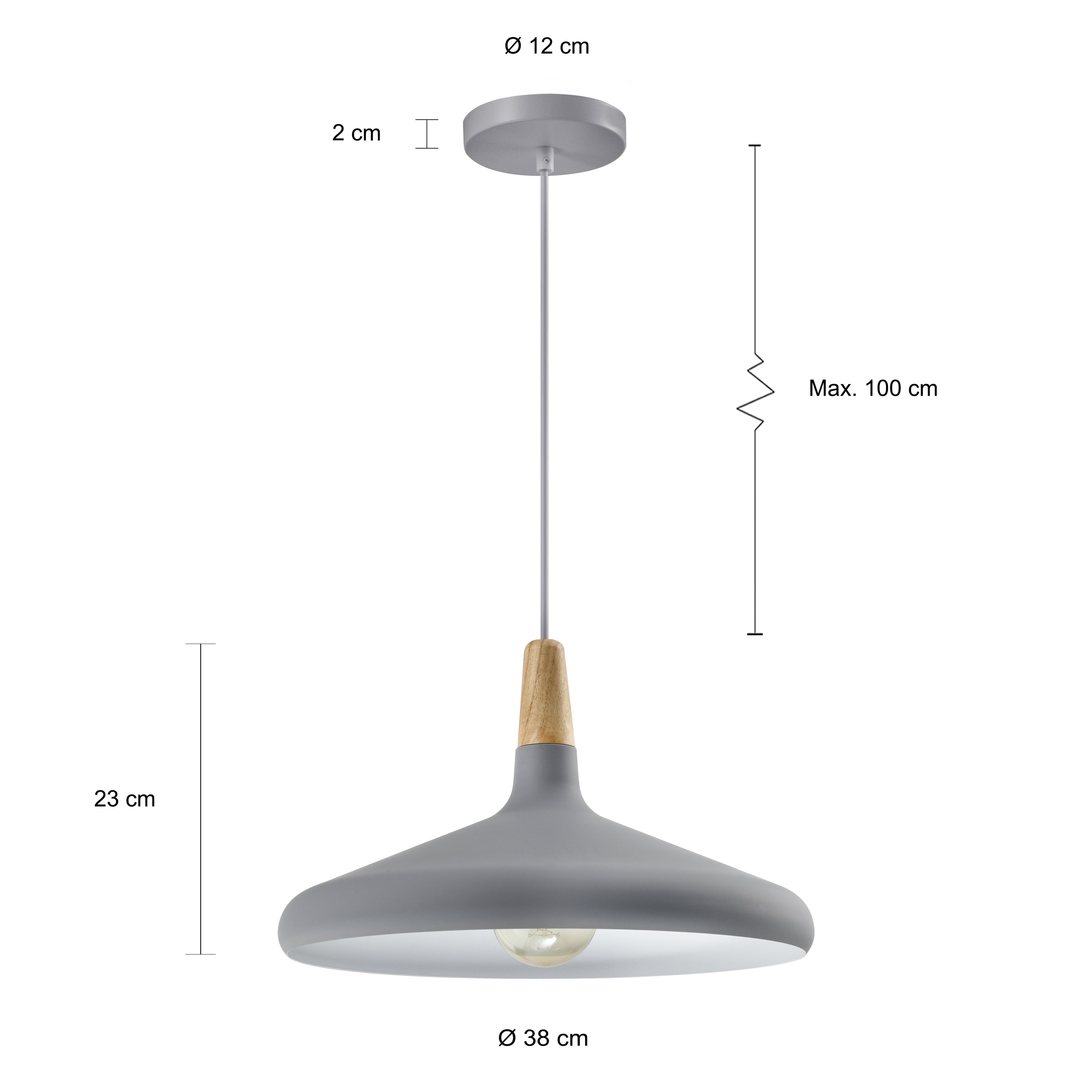 - Door de grijze lamp op te hangen in een interieur met meerdere houten accenten krijg je een rustgevend geheel.