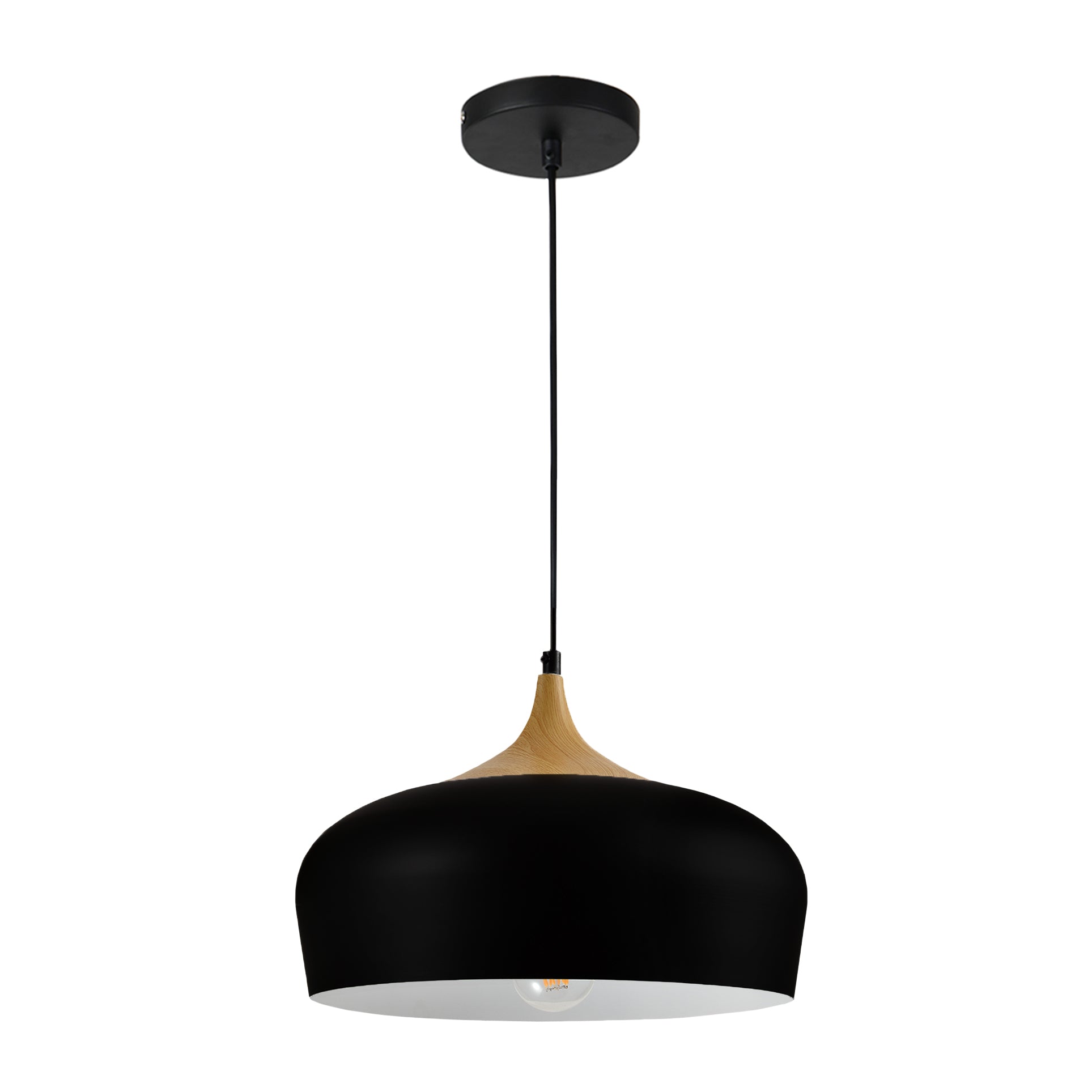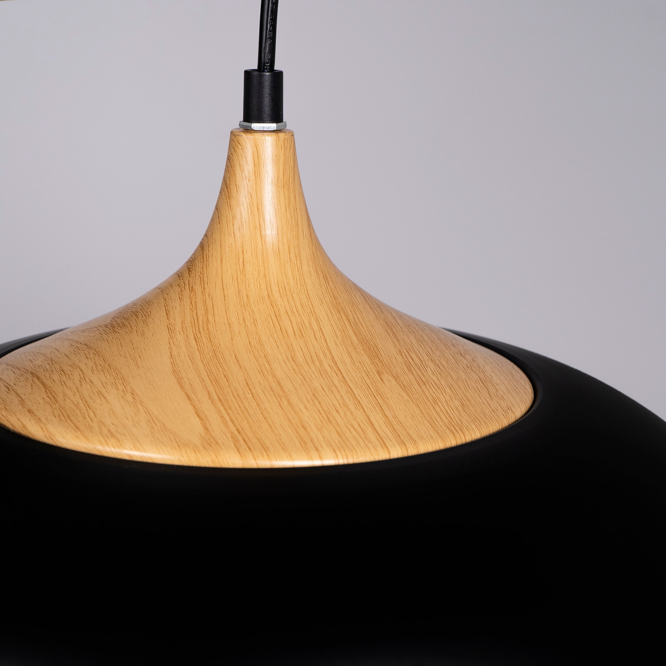 - De QUVIO hanglamp is zeer robuust en bestaat uit metaal, de kroon van de kap is afgewerkt met een houtlook.