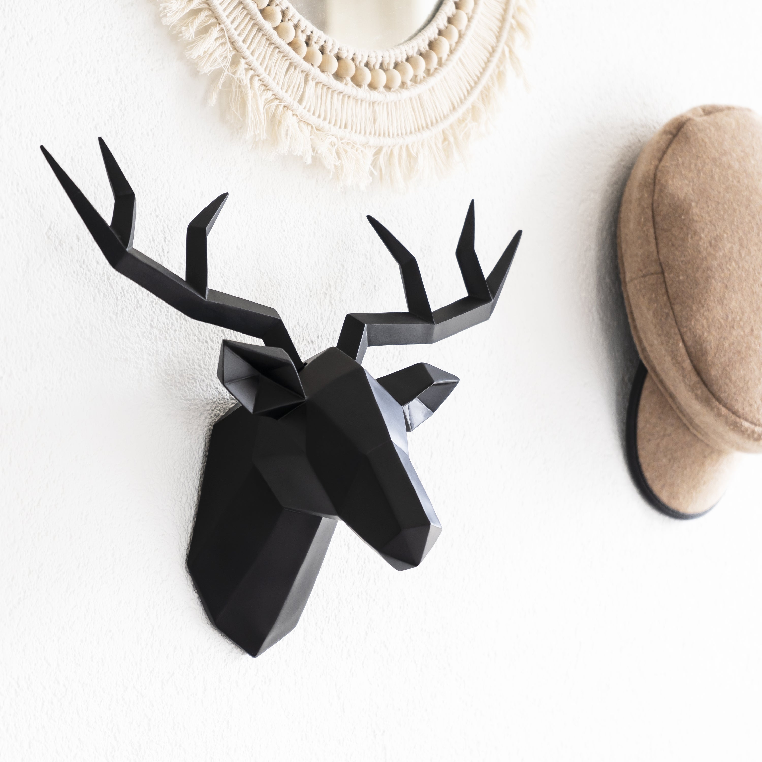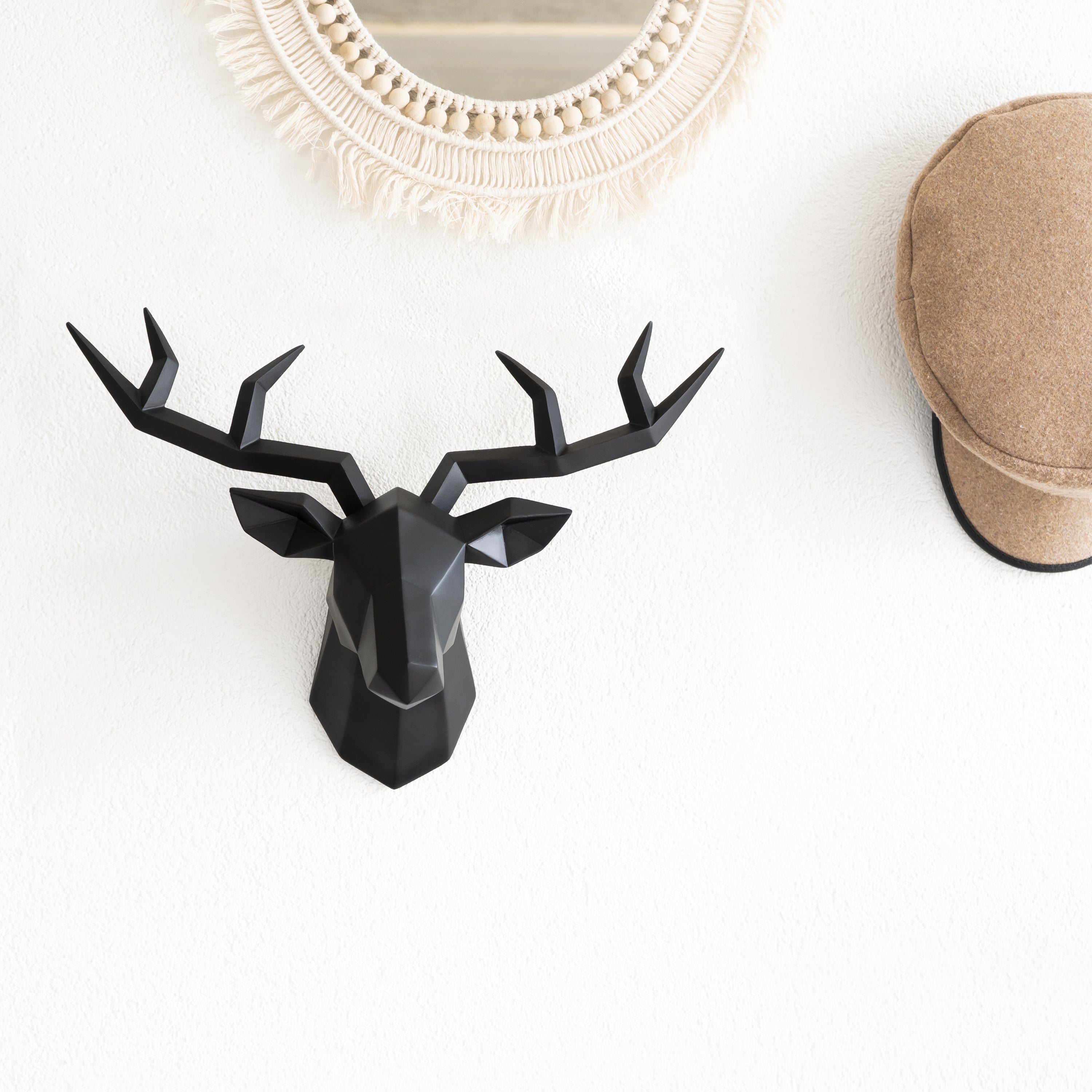- De QUVIO Hert muurdecoratie is een 3D hert met allerlei vormen die zorgen dat de hert een zeer elegante uitstraling geeft.