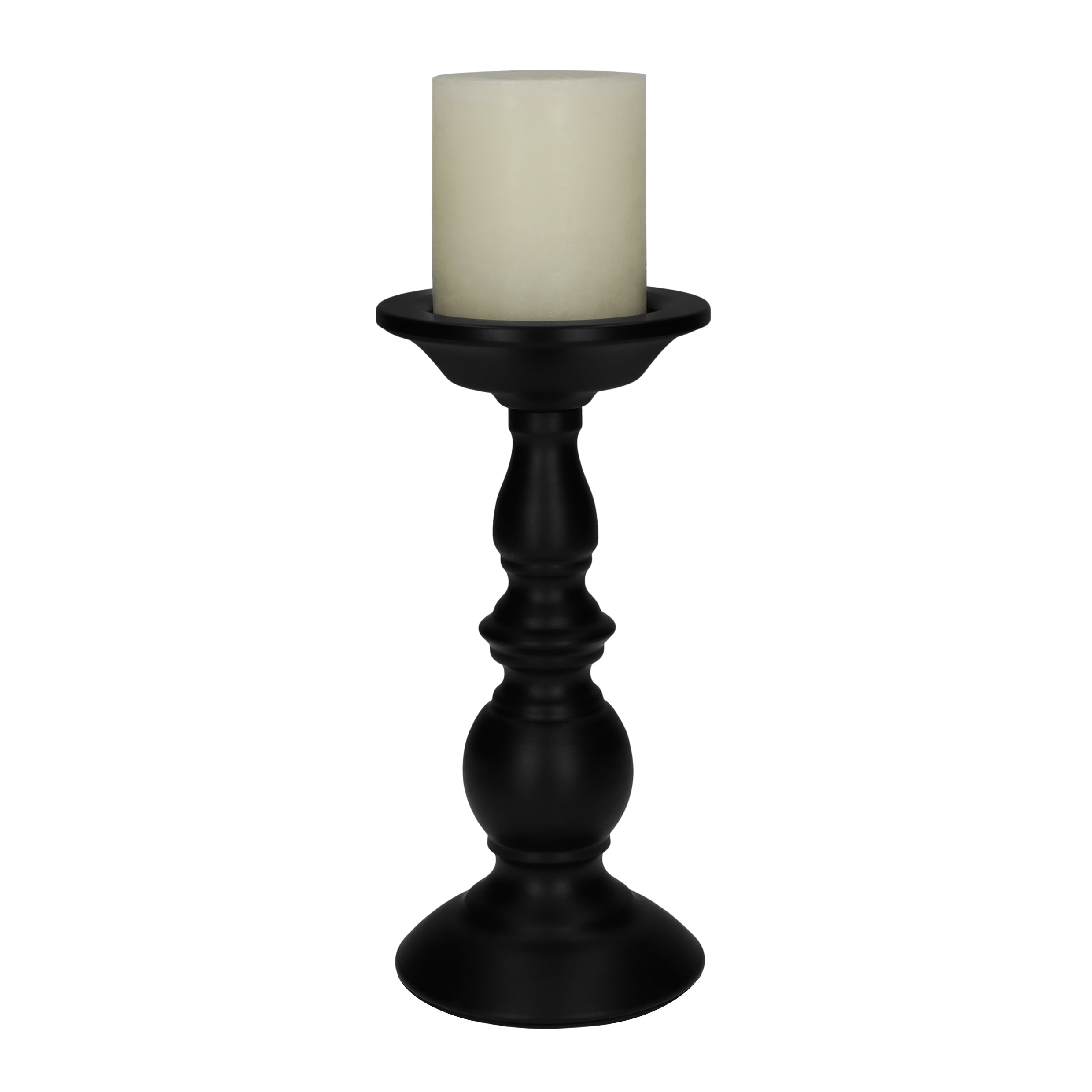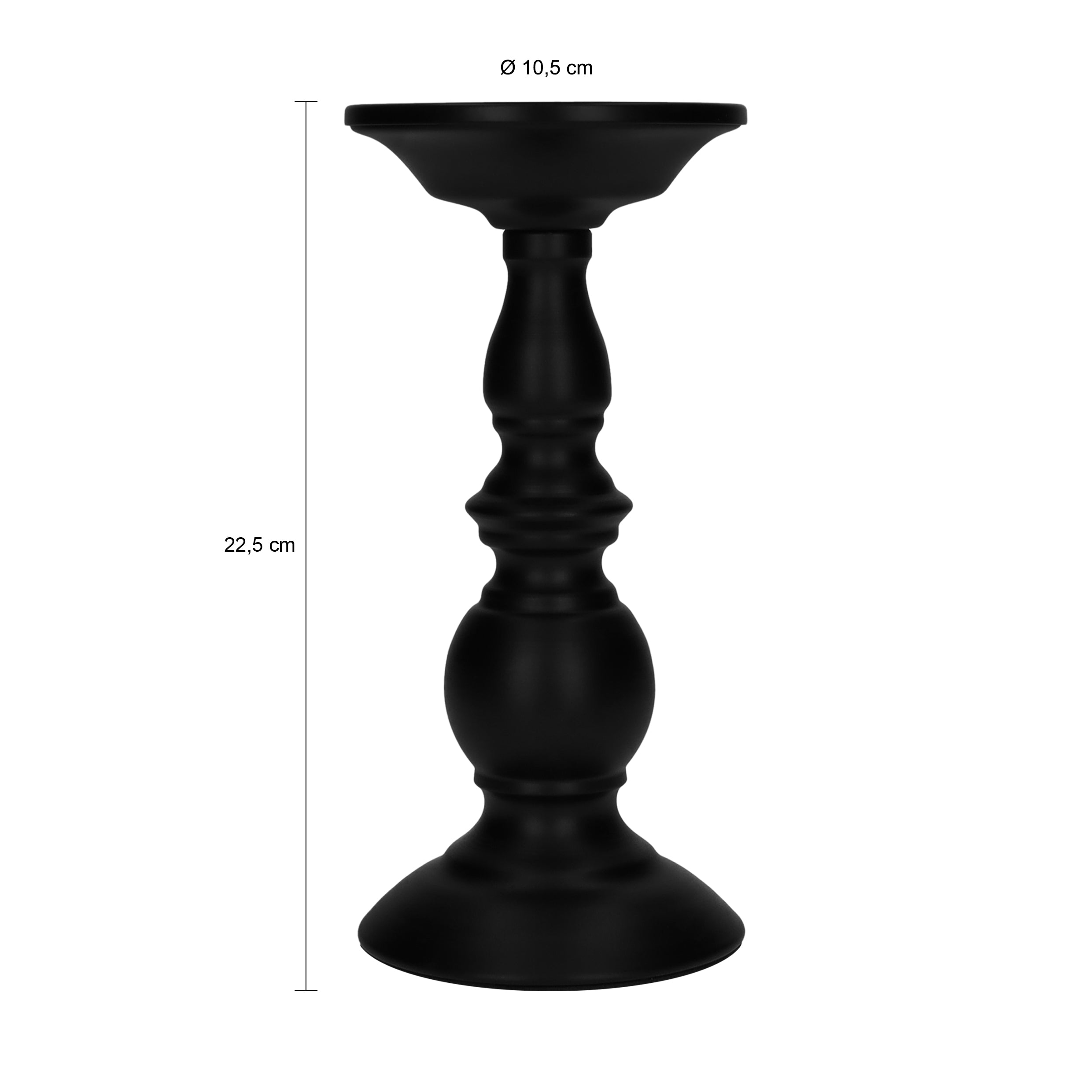 - De kaarsenhouder heeft een gedetailleerde afwerking, is gemaakt van metaal en zwart van kleur.