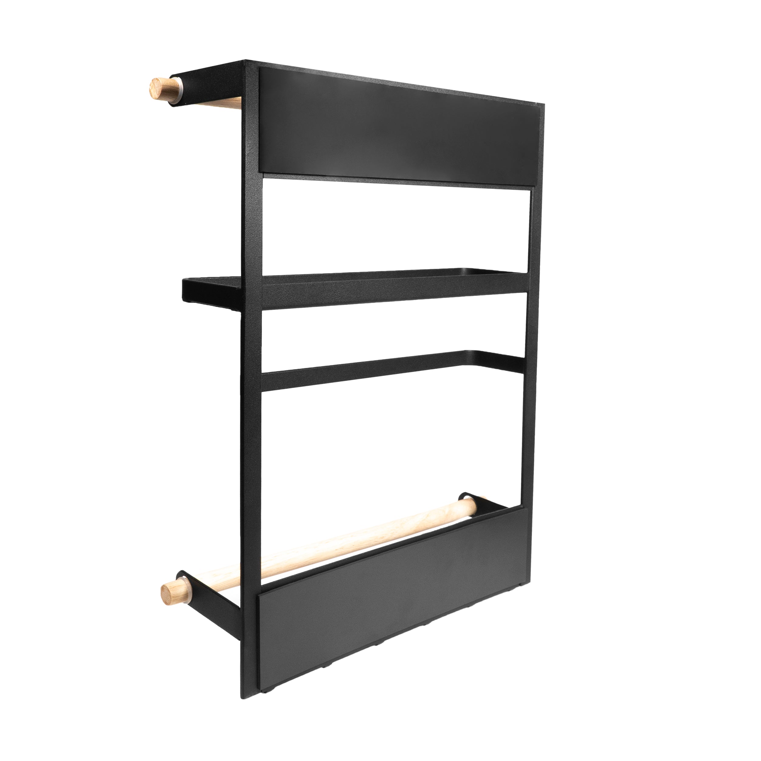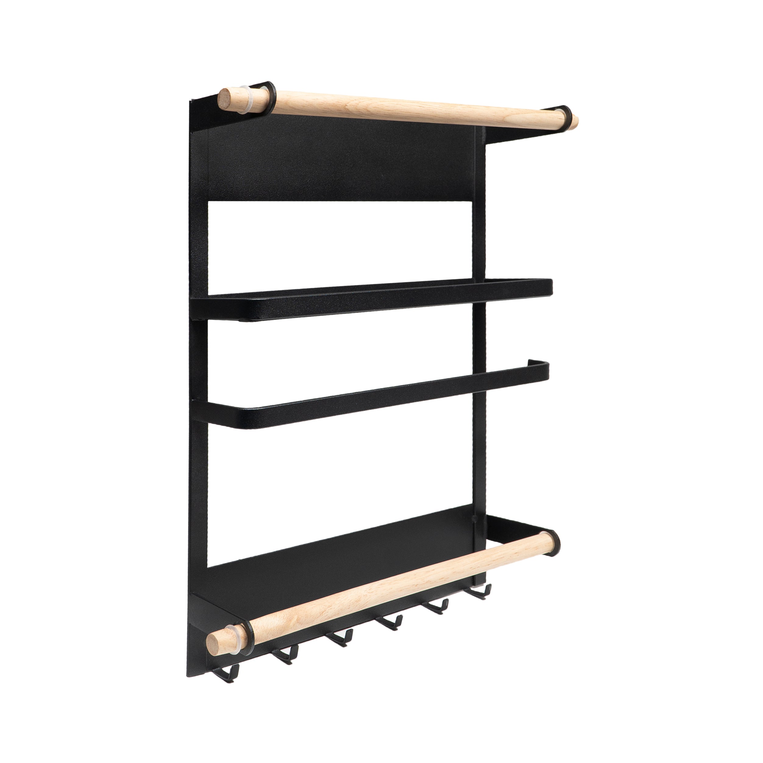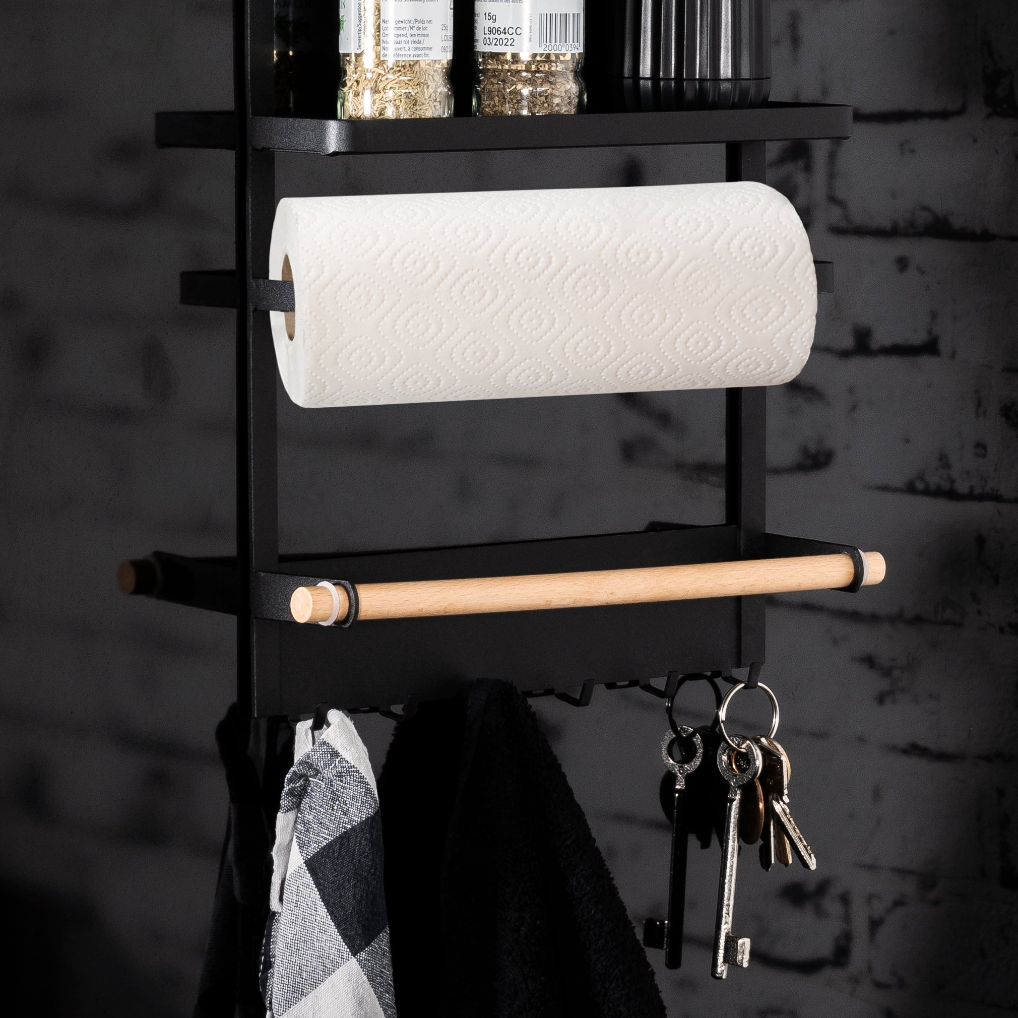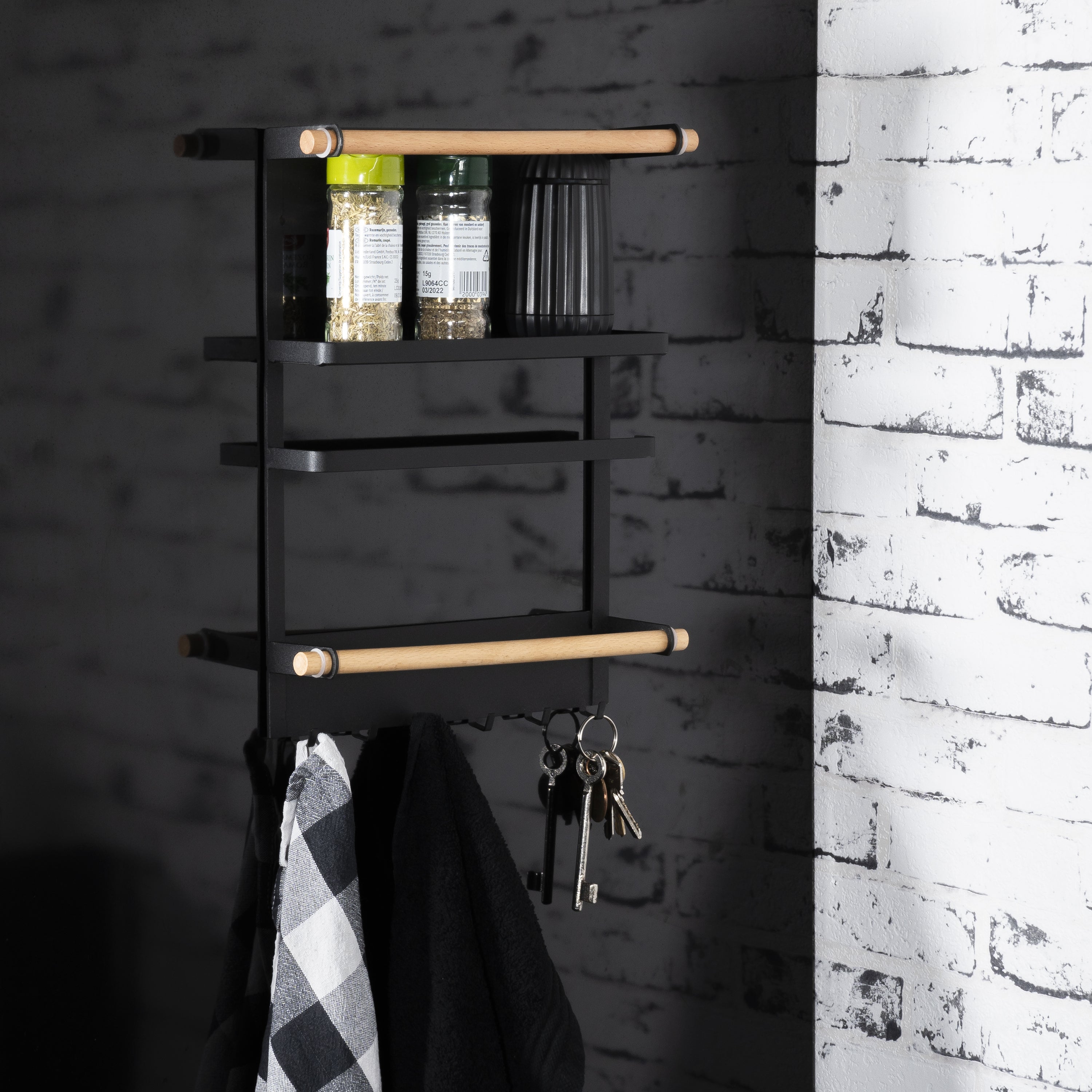 - Het keukenrek in het zwart met magneetstrip is 35 cm hoog, 27 cm breed en 7,5 cm diep.