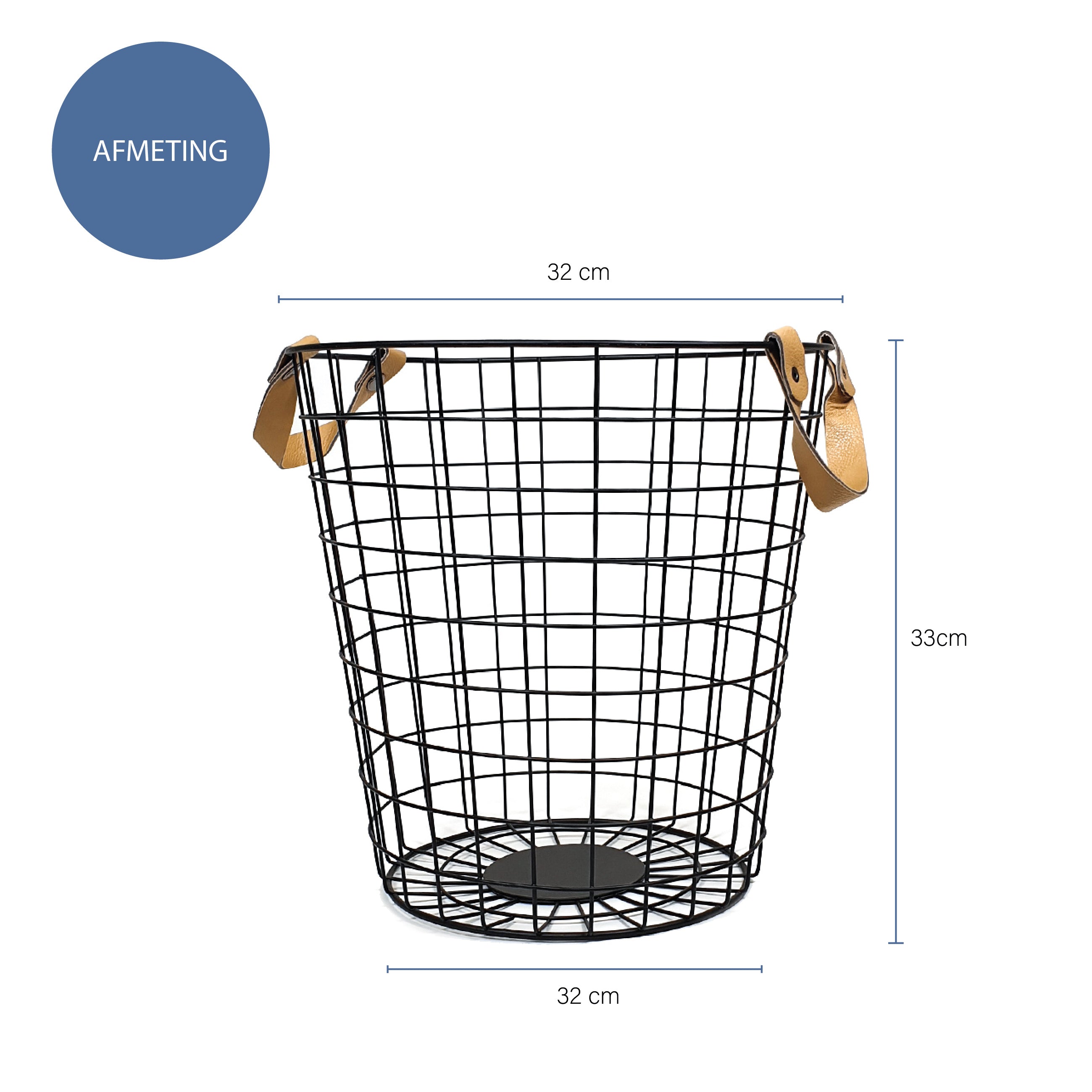 QUVIO Opbergmand draadstaal - Klein - 32 x 32 x 33 cm (lxbxh) Met de QUVIO Opbergmand draadstaal - Klein ruim je je warmte dekens eenvoudig en stijlvol op. De opbergmand staat binnen ieder interieur en is een ware eye-catcher in je huis. Het geeft je huis een warme en vriendelijke uitstraling. Kwaliteit De QUVIO opbergmand is van goede kwaliteit. Dit is de juiste keuze als je op zoek bent naar een sterke opbergmand die er ook nog eens heel trendy uitziet als woonkameraccessoire. De van leer gemaakte handvaten maken de opbergmand gebruiksvriendelijk om te kunnen verplaatsen. Materiaal De QUVIO Opbergmand draadstaal - Klein is gemaakt van staal in de kleur zwart. Door het geblokte luchtige uiterlijk is het een accessoire wat als eye-catcher in je woonkamer kan worden geplaatst. De handvaten zijn gemaakt van een goede kwaliteit leer en zitten aan de bovenkant van de mand vast. Daarmee is de QUVIO opbergmand een geschikte woonkameraccessoire om op een stijlvolle manier uw spullen op te kunnen bergen. Grootte De opbergmanden hebben een ronde vorm en zijn gemaakt van draadstaal, waardoor je er mooi doorheen kunt kijken. Deze mand heeft een lengte en een diameter van 32 cm en een hoogte van 33 cm. De mand is ook in een grotere variant te verkrijgen met de volgende afmetingen 38 x 38 x 37,5 cm (lxbxh). Gebruik van de QUVIO metalen opbergmand - klein Door de leren handvaten is de mand gemakkelijk te verplaatsen. Je kan de mand in de woonkamer neerzetten om daar bijvoorbeeld kleedjes in op te bergen, maar ook is de mand handig voor het opbergen van tijdschriften, huishoudspullen, sjaals en handschoenen, kranten en nog veel meer!
