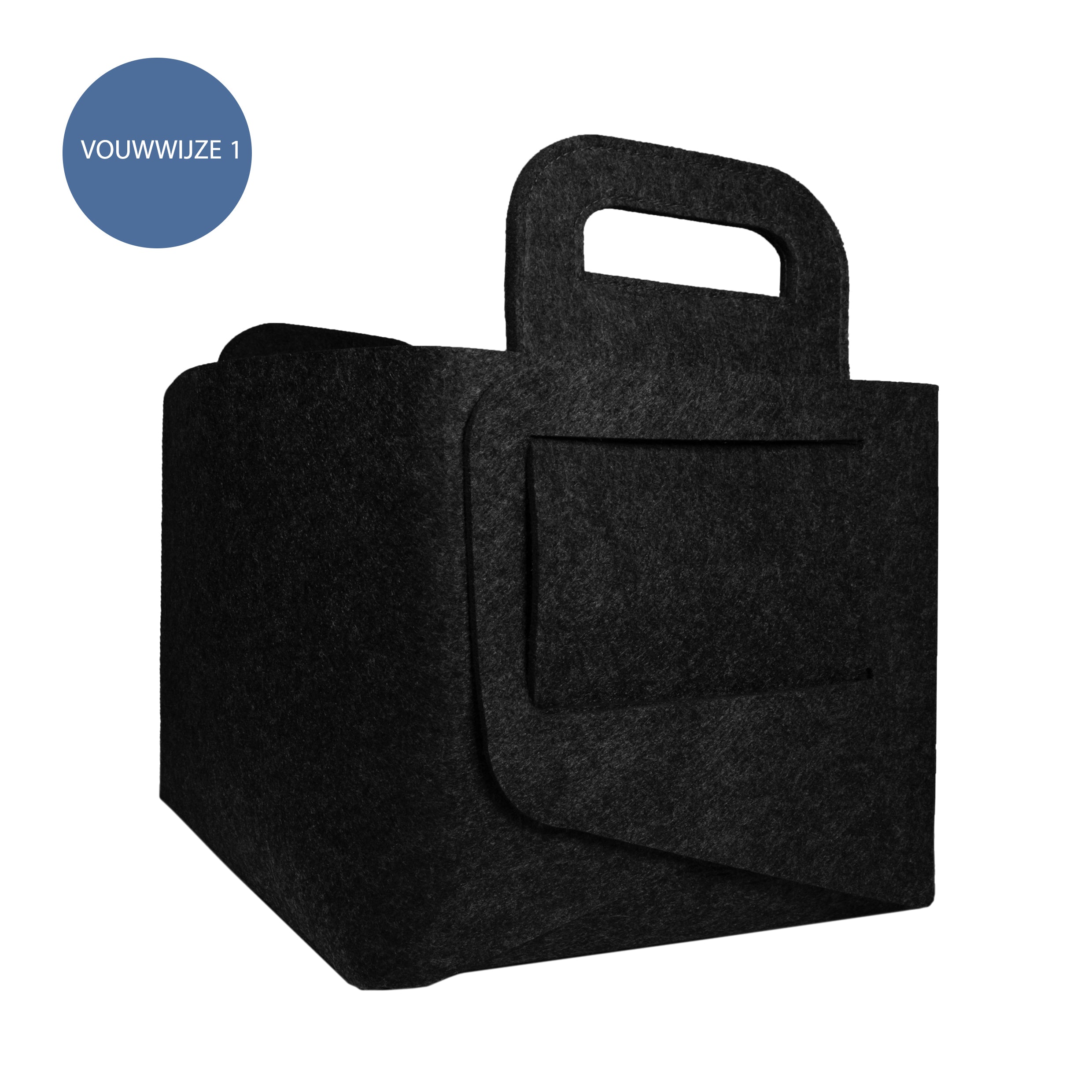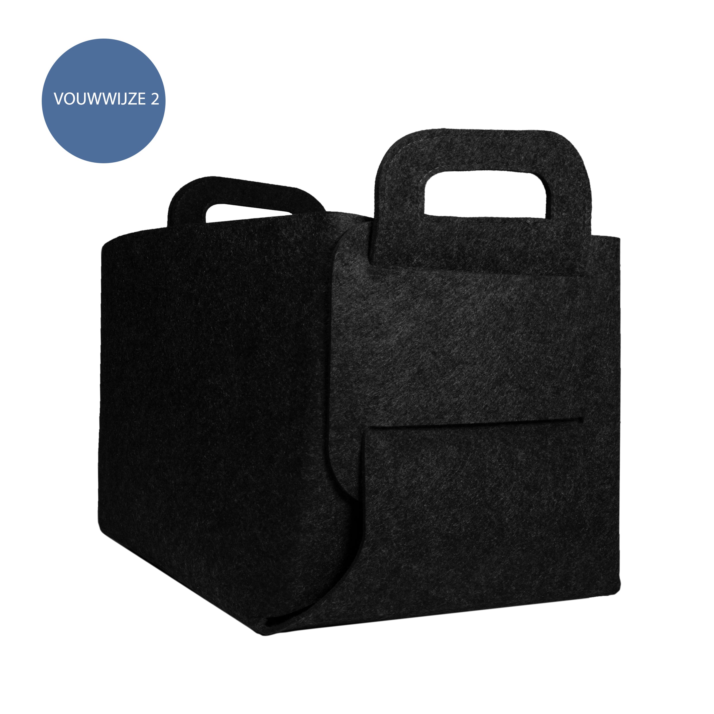 - Als je de vilten opbergmand in gebruik hebt, verplaats je de mand eenvoudig door de handvaten.