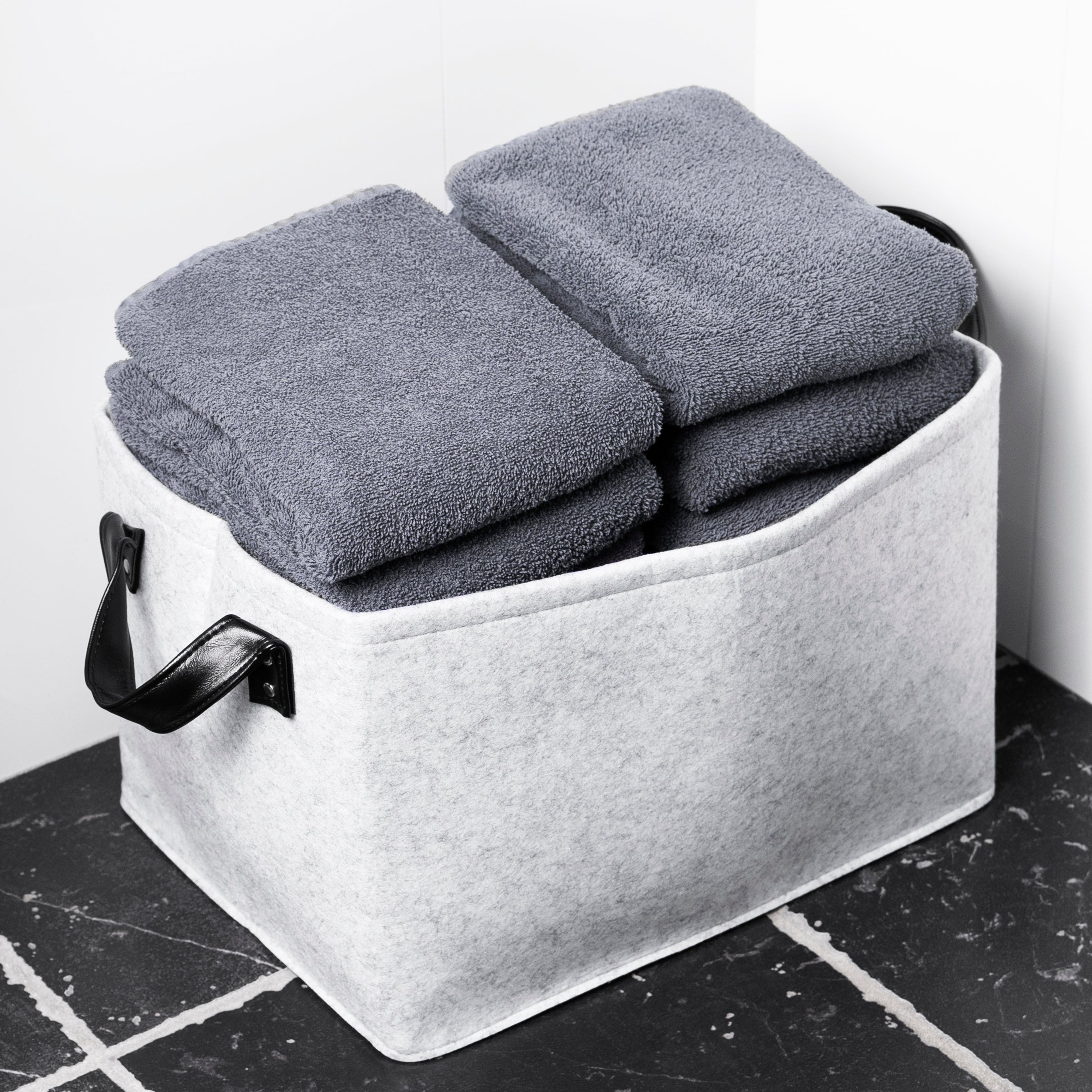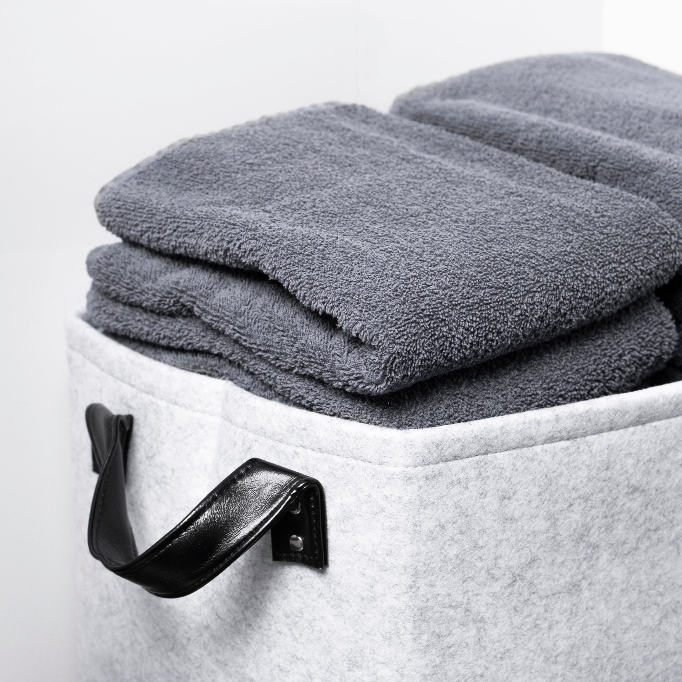- De vilten opbergdozen zijn lichtgewicht en hebben handige handvaten.
