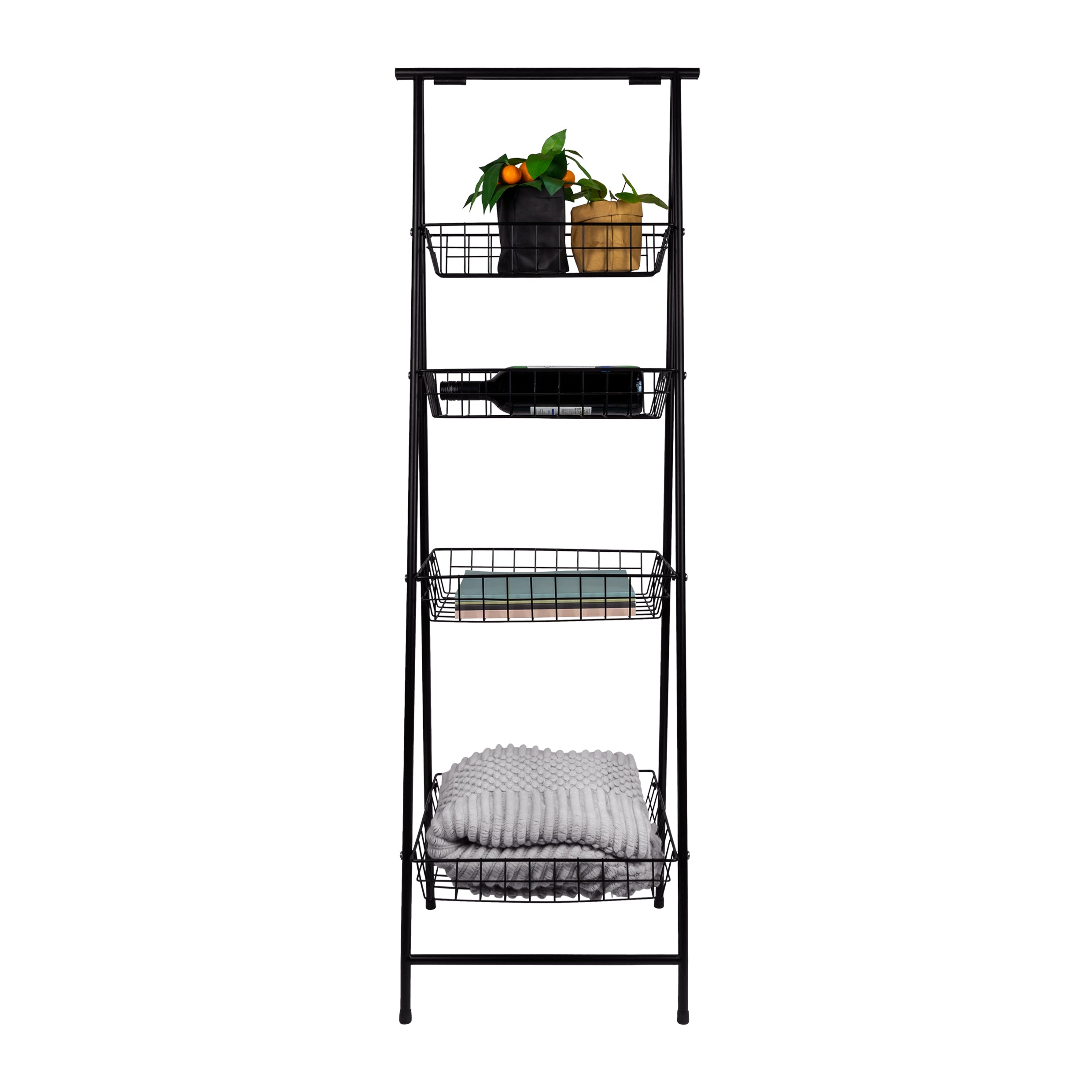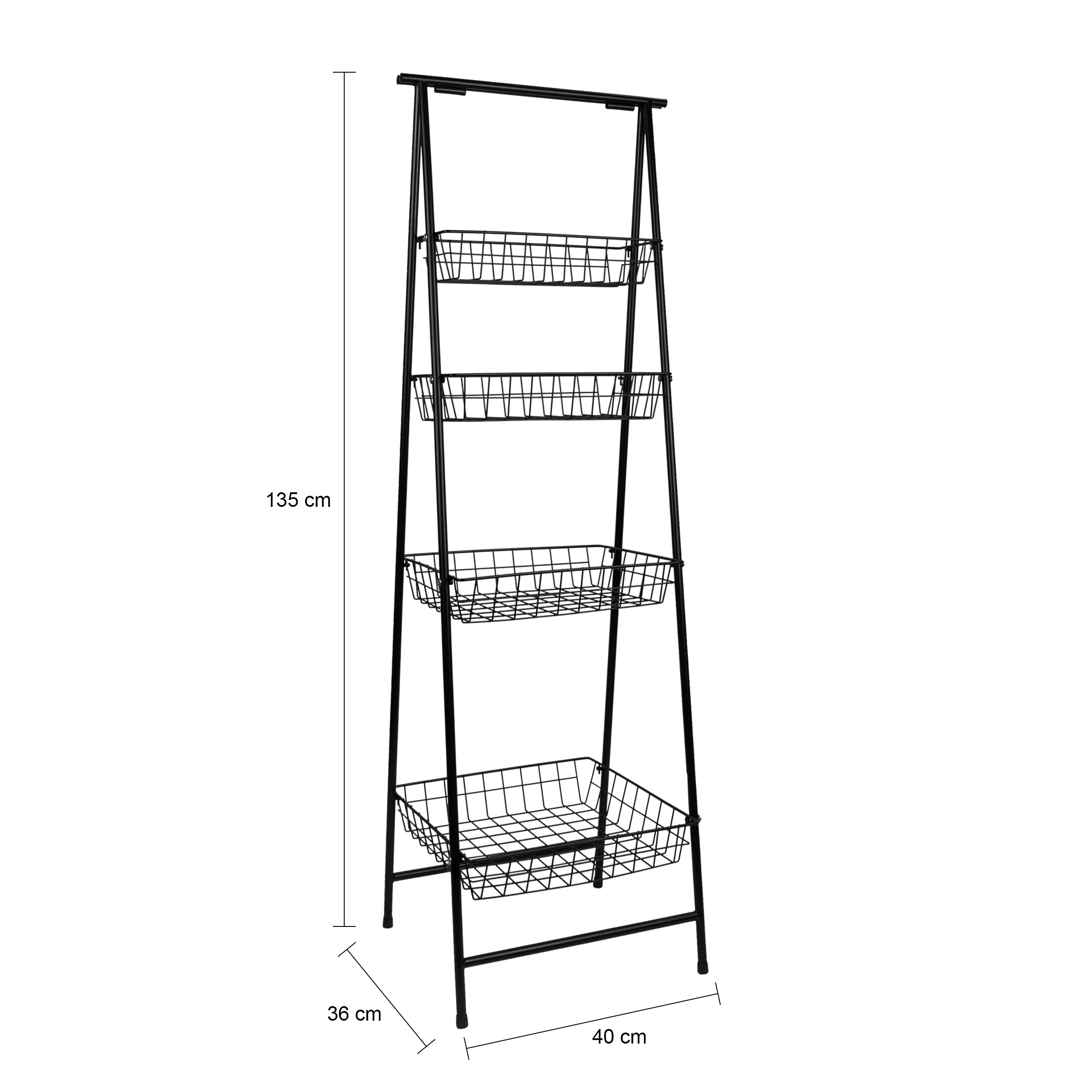 QUVIO Opbergrek met 4 bakken - Metaal - Zwart